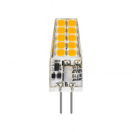 Bombilla LED GY6.35 luz cálida 2700K. Bombilla de tamaño pequeño tipo GY6.35 con iluminación LED de 2.4W y luz amarilla cálida (2700K).