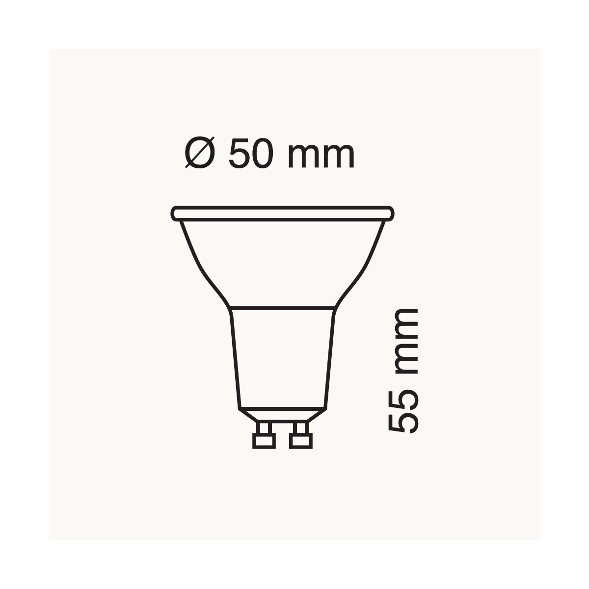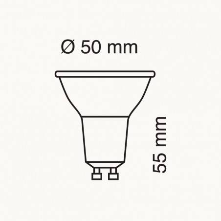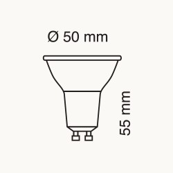 Bombilla GU10 con intensidad de luz dimmable. Bombilla rosca GU10 con haz de luz de 36º y temperatura de color blanca cálida (2700K). Puedes regular la intensidad de luz que emite la bombilla si la lámpara cuenta con dimmer o con un regulador de pared.
