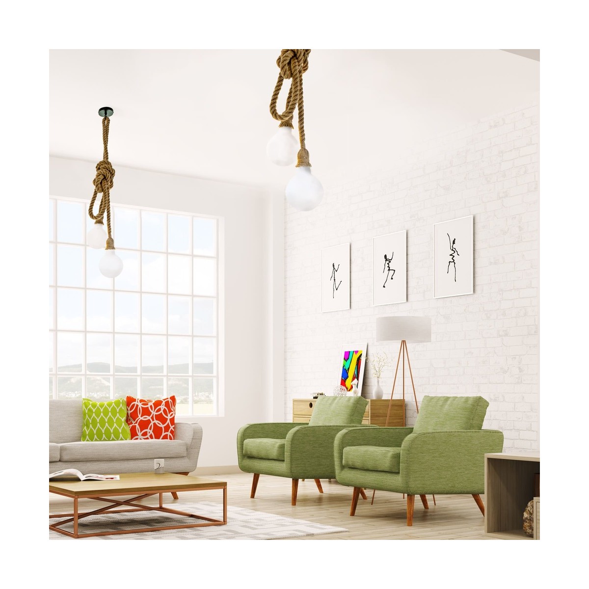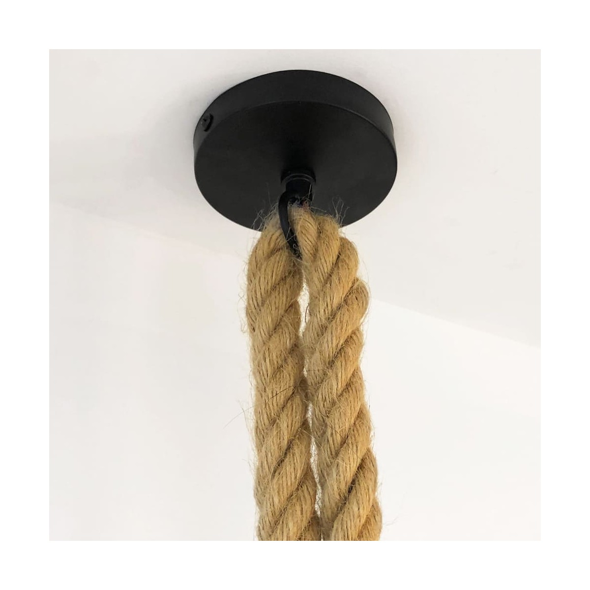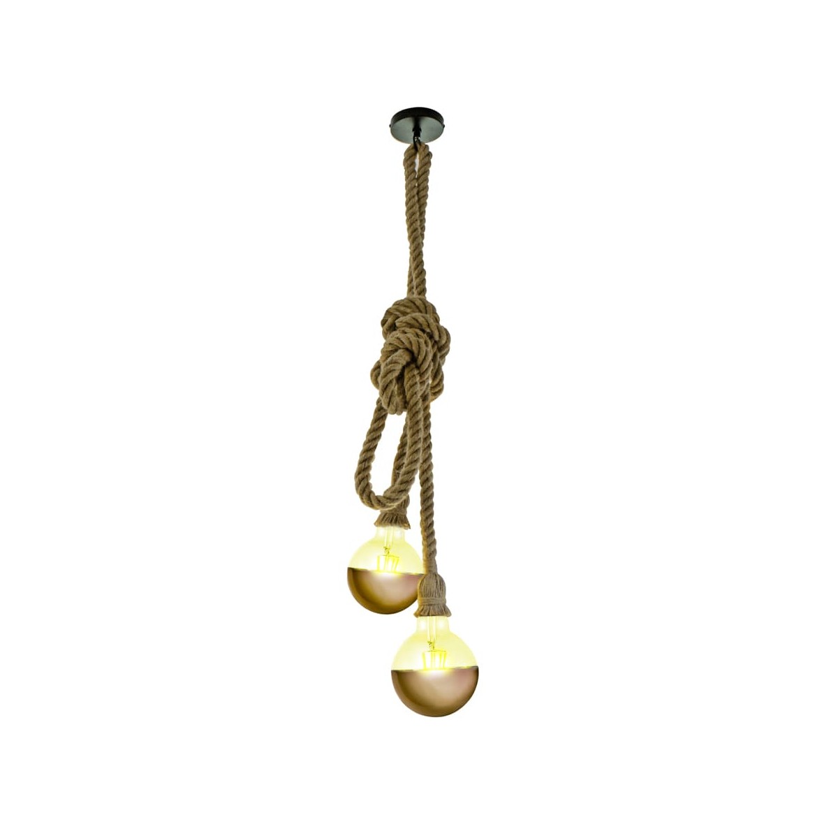 Lámpara de techo de estilo rústico con dos cuerdas de 2 metros y portalámparas E27. Puedes anudar la cuerda de la forma que más te guste, las dos cuerdas juntas, a diferetes alturas, anudando cada una de las cuerdas por separado... Recomendamos combinar con bombillas LED vintage.