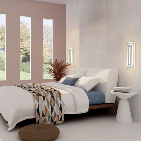 Aplique LED Cryn con tecnología Smart. Aplique rectangular con iluminación dimmable en intensidad y tres tonos de color diferentes seleccionables. Para controlar la luz hay que conectar el aplique a un smartphone a través de una app. Puedes instalarlo tanto en el techo como plafón como en la pared como un aplique.