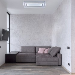 Plafón de techo LED Cryn con temperatura de color fría. Este plafón de techo moderno es ideal para instalar como iluminación principal en un dormitorio, un salón o un dormitorio. Plafón de techo de diseño rectangular con luz LED integrada de 56W, intensidad lumínica de 4200 lúmenes y temperatura de color de 6000K (luz fría). Memoria de encendido.