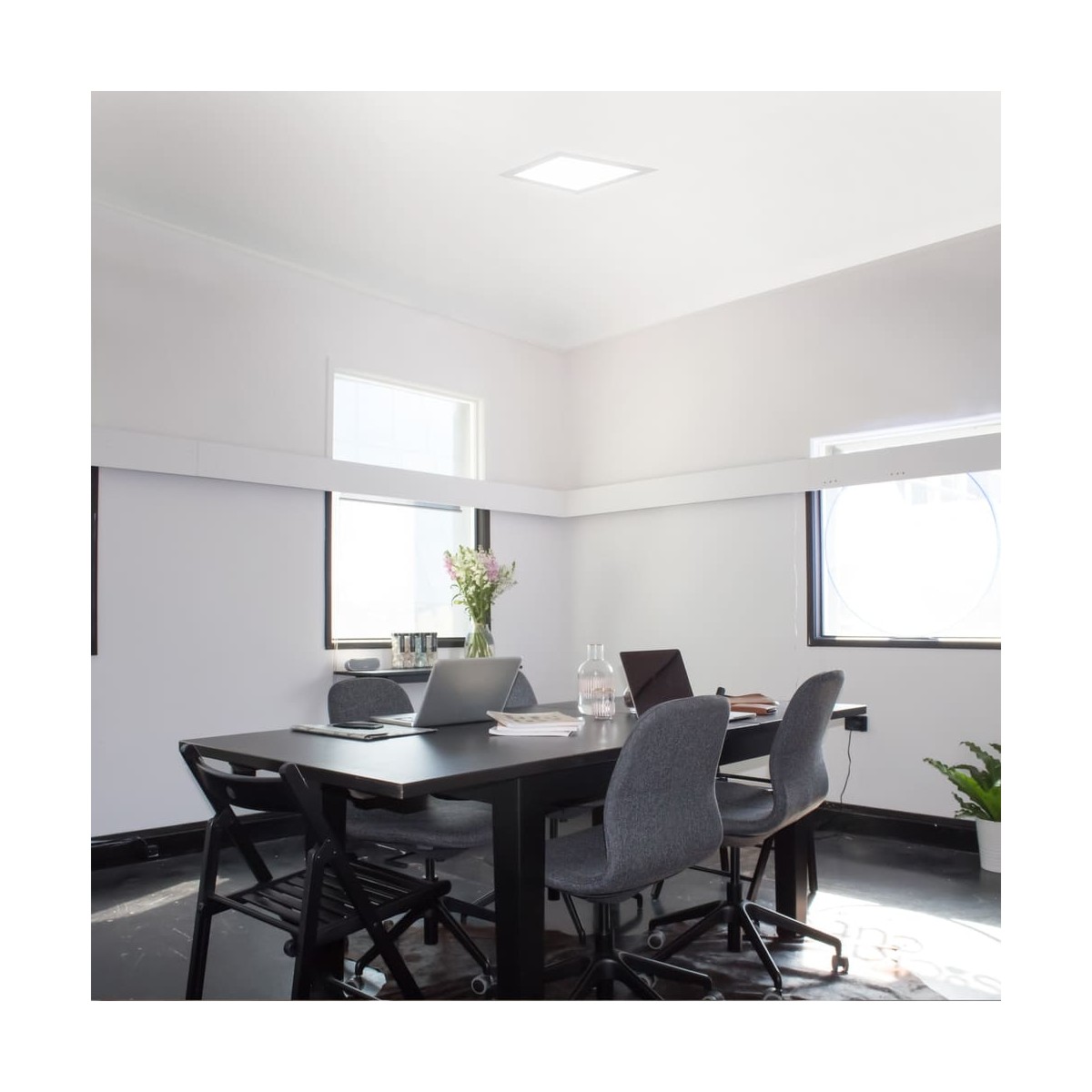 Downlight cuadrado para empotrar con iluminacion LED integrada de 18W, con 1440 lummenes. Luz neutra 4000K. Estructura de aluminio lacado en blanco con difusor acrilico.