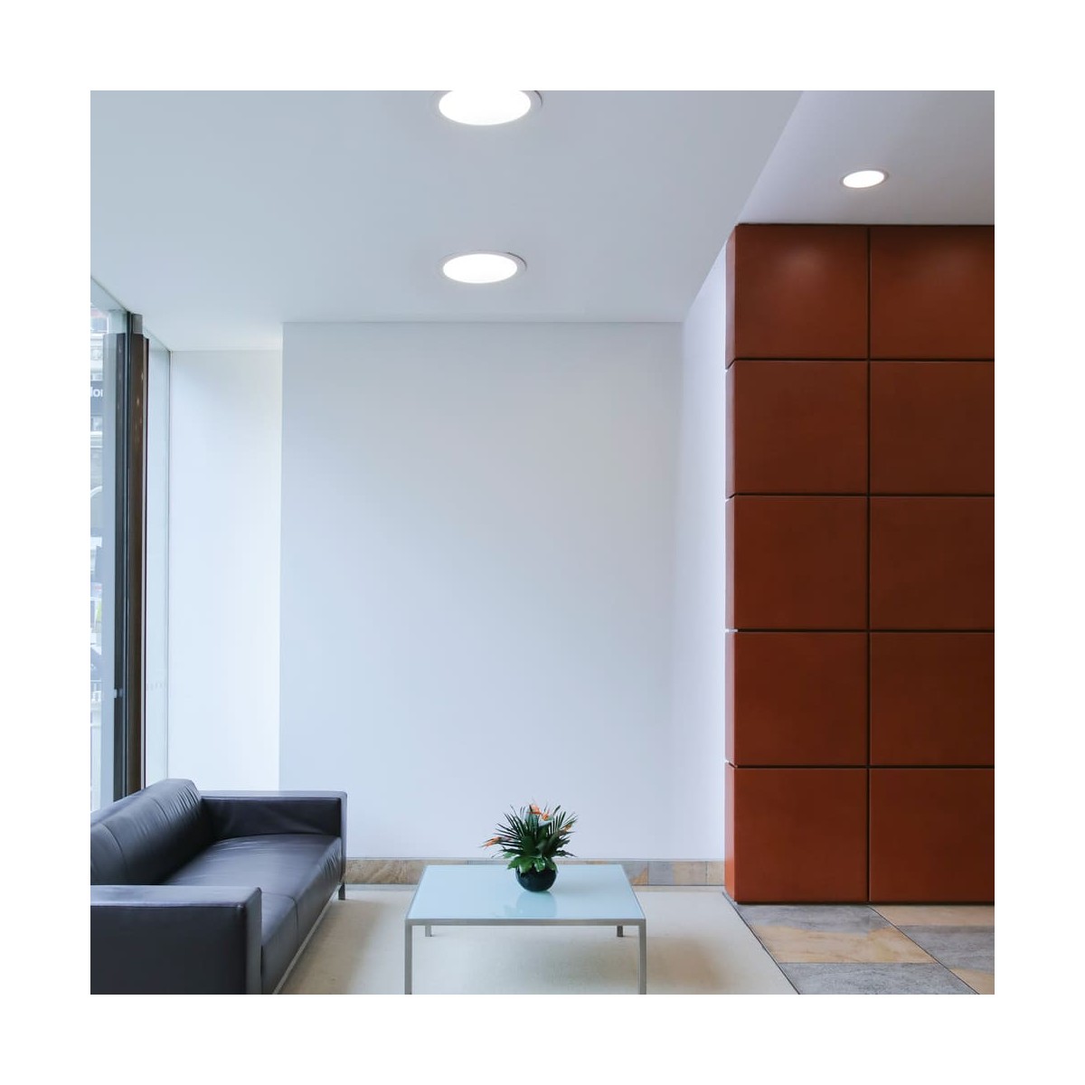 Downlight LED redondo para empotrar con iluminacion LED integrada de 30W, con 2450 lummenes. Luz neutra 4000K. Estructura de aluminio lacado en blanco con difusor acrilico.