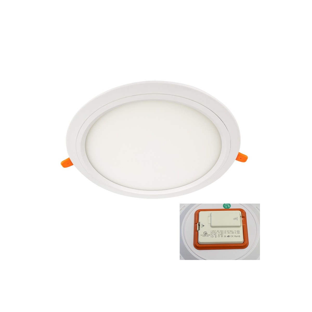 Downlight con iluminación LED integrada de 25W y luminosidad alta. Perfecto para grandes proyectos e instalaciones por su fácil instalación del driver con click. Puede extraerse fácilmente