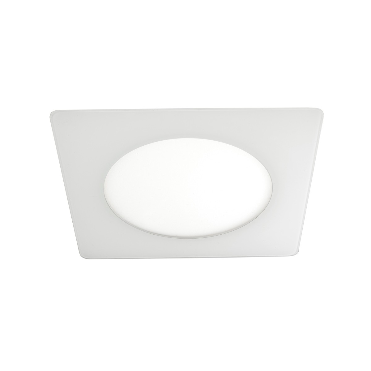 Downlight LED extraplano cuadrado con cristal decorativo de color blanco, perfecto para techos bajos, ya que solo tiene una profundidad de 2cm. Iluminación led integrada de 20W con luz neutra en 4000K. Perfecto para empotrar en techos de cocinas, pasillos, baños o locales comerciales, restaurantes o tiendas.