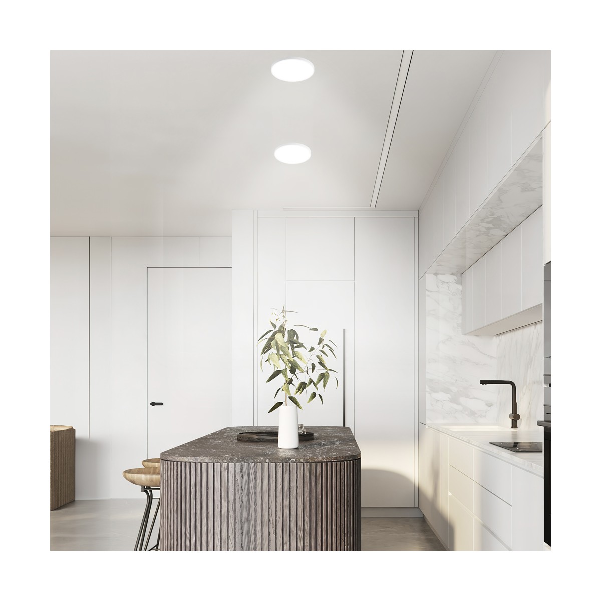 Downlight de superficie apto para baños. Downlight circular con tecnología LED diseñado para instalar en el techo de cocinas y baños como iluminación. Fácil instalación, directamente en el techo. Lleva integrada luz LED en tono blanco neutro (4000K) y es muy práctico para aportar luz en zonas de casa. Diseño circular de 27 centímetros de diámetro. Grado IP44.