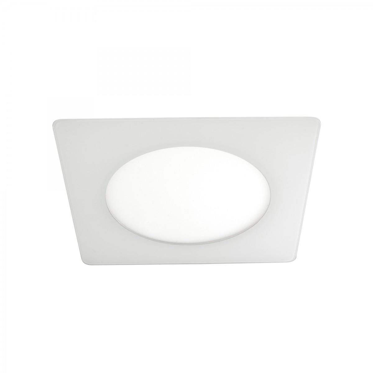 Downlight led extraplano cuadrado con cristal decorativo de color blanco, perfecto para techos bajos, ya que solo tiene una profundidad de 2cm. Iluminación led integrada de 6W con luz neutra en 4000K. Perfecto para empotrar en techos de cocinas, pasillos, baños o locales comerciales, restaurantes o tiendas.