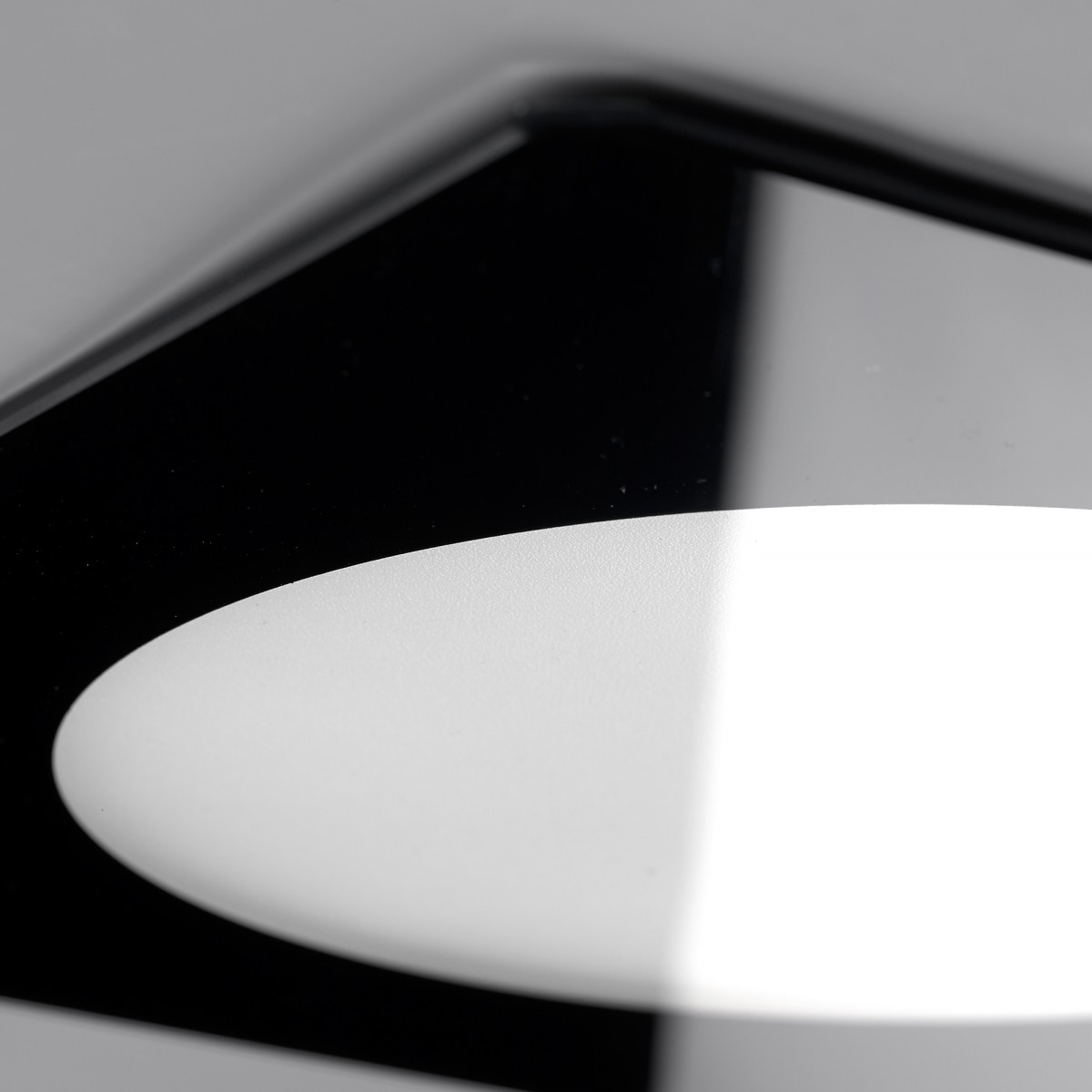 Downlight led extraplano cuadrado con cristal decorativo de color negro, perfecto para techos bajos, ya que solo tiene una profundidad de 2cm. Iluminación led integrada de 6W con luz neutra en 4000K. Perfecto para empotrar en techos de cocinas, pasillos, baños o locales comerciales, restaurantes o tiendas.