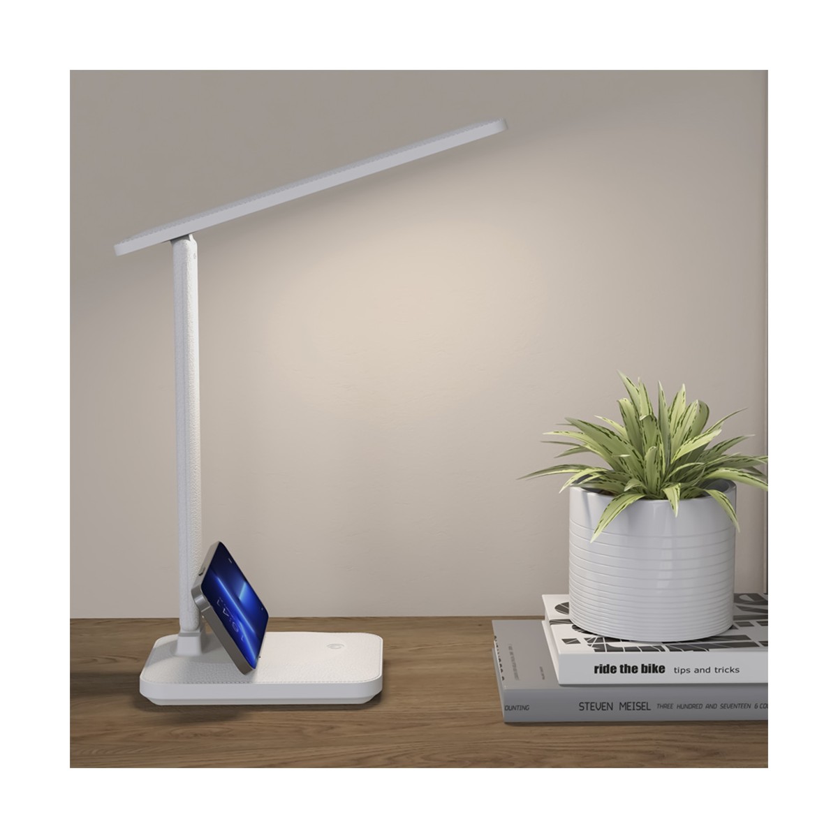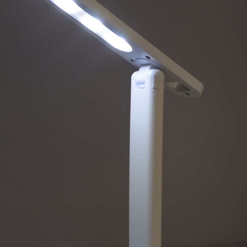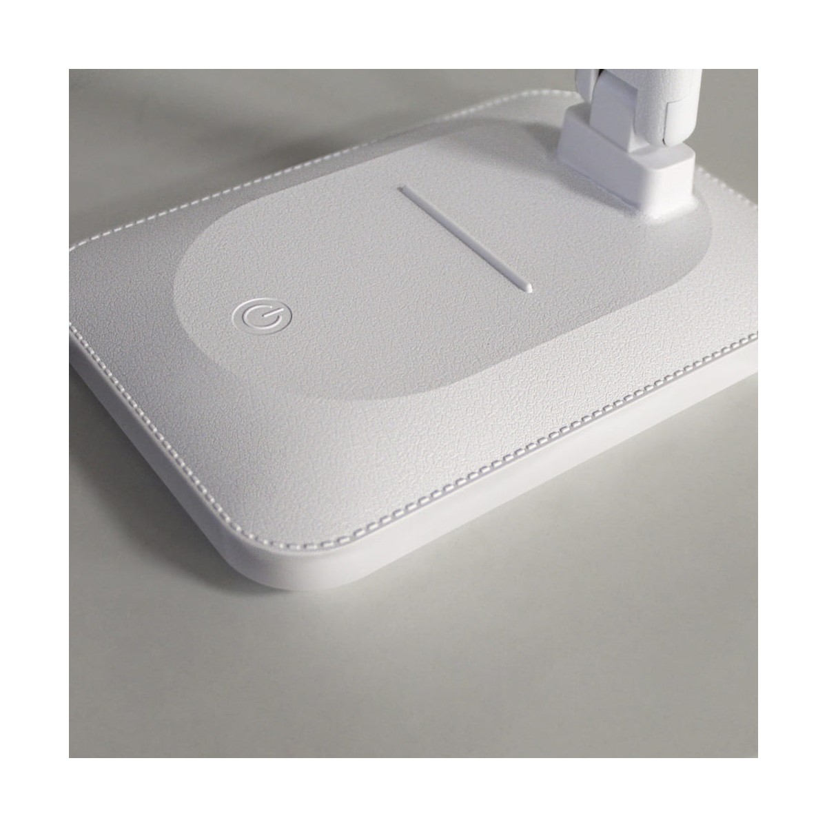 Flexo LED CCT para leer y estudiar. Flexo orientable con sistema touch en la base para regular la intensidad y seleccionar el tono de color de la luz. Cuenta con batería recargable y un puerto USB-C para cargar dispositivos electrónicos. Flexo LED moderno muy práctico para utilizar como luz de lectura y de estudio.