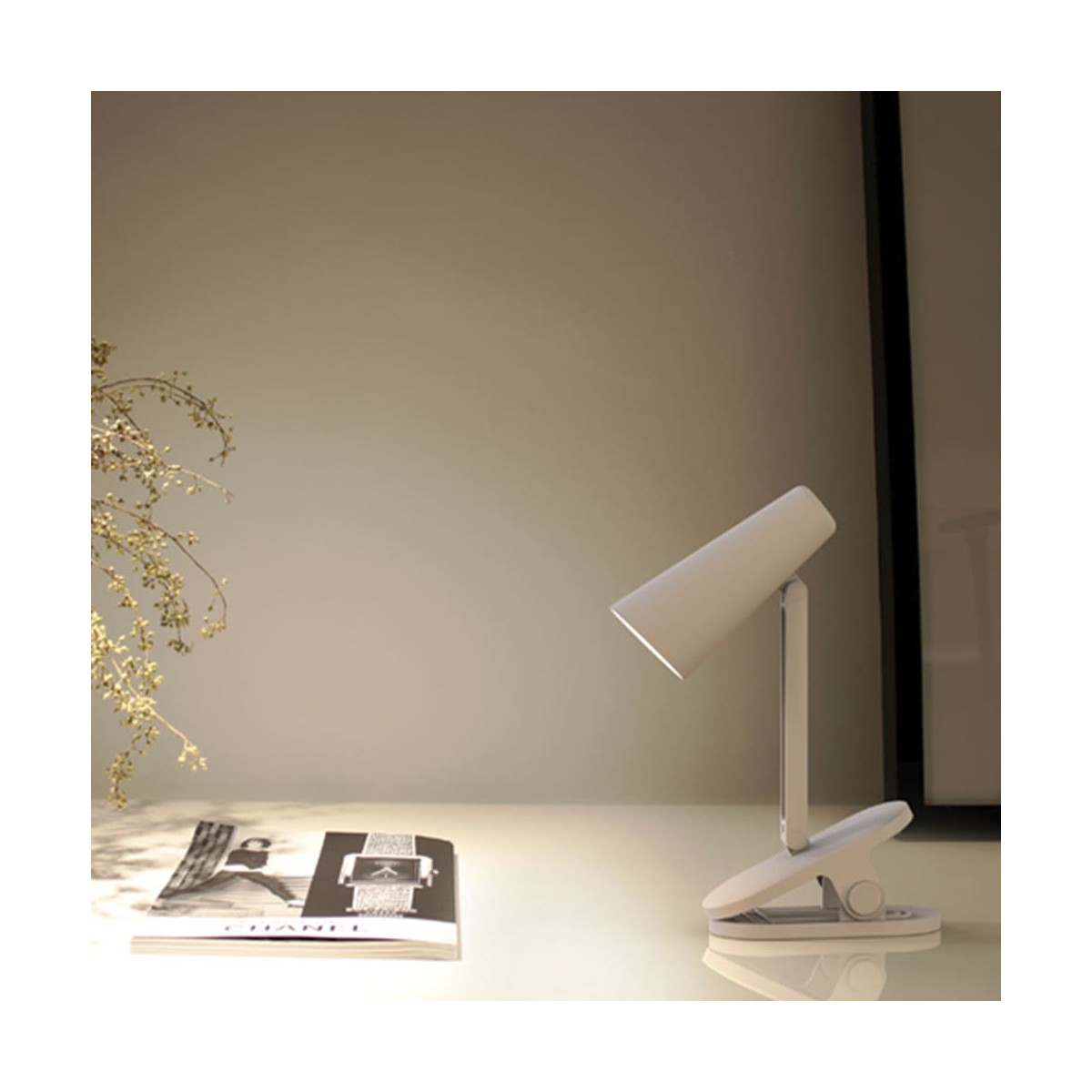 Flexo LED con pinza para colocar en mesas, escritorios y estanterías. Flexo con luz LED muy práctico para utilizar como luz auxiliar, de lectura o de estudio. Lleva integrada iluminación LED la cual puedes adaptar a las necesidades del momento dimando la intensidad y regulando la temperatura de color. Su pinza lo convierte en un flexo muy práctico y versátil ya que puede colocarse en diferentes sitios de la estancia. Batería recargable y puerto USB tipo C.
