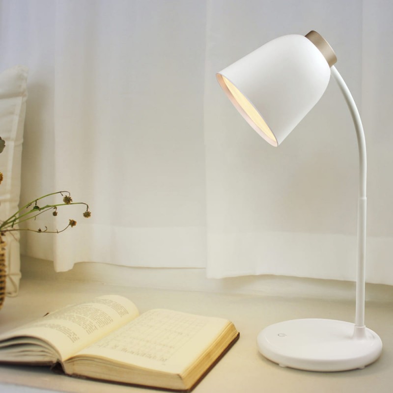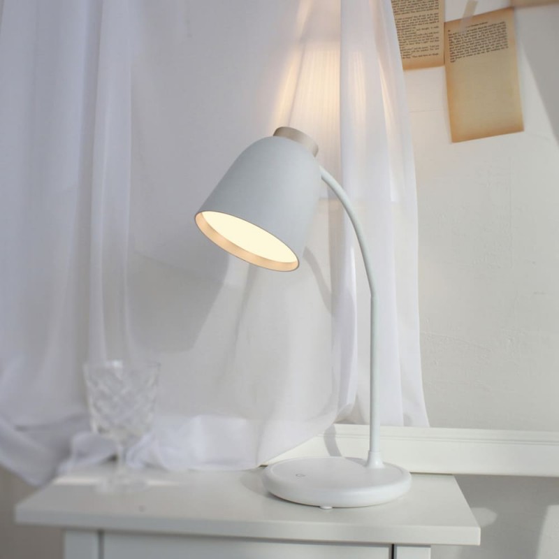 Lámpara de escritorio con luz LED CCT integrada. Lámpara diseñada para colocar en escritorios, mesas auxiliares y mesitas de noche como iluminacion. Lleva integrada luz LED dimmable en intensidad y tres temperaturas de color (3000-4000-6000K). Sistema touch de encendido, puerto USB-C de carga y batería recargable. Lámpara de escritorio de color blanco ideal para leer, estudiar y/o trabajar. Memoria de encendido.