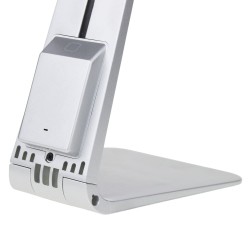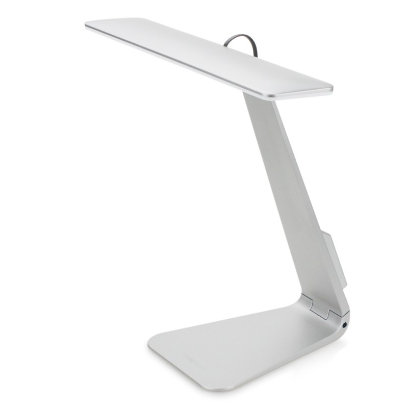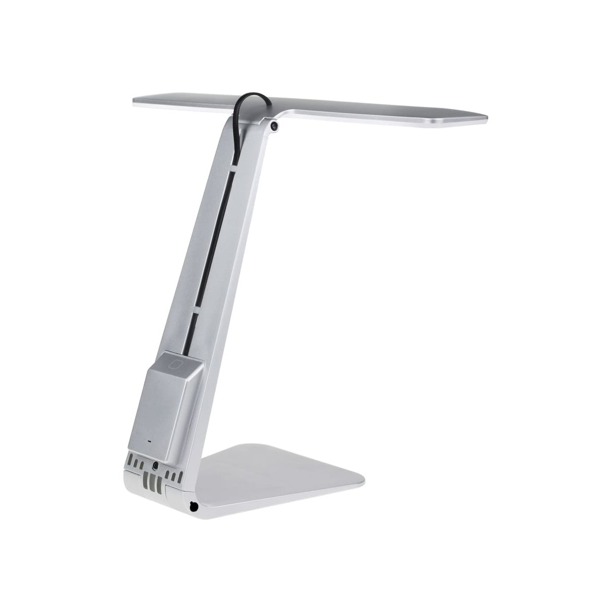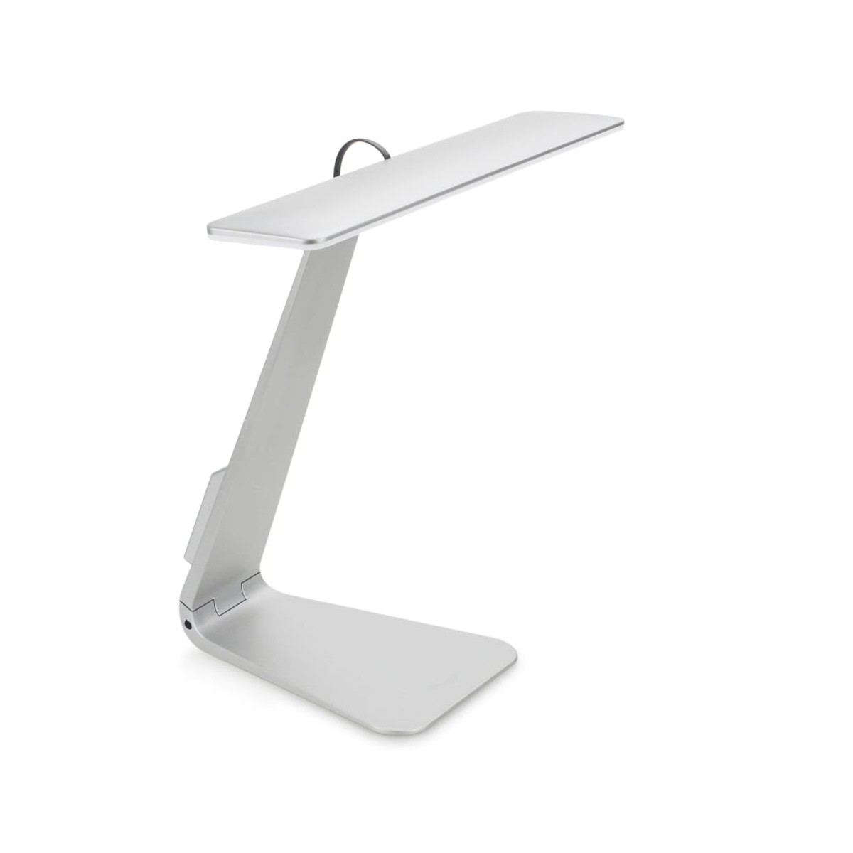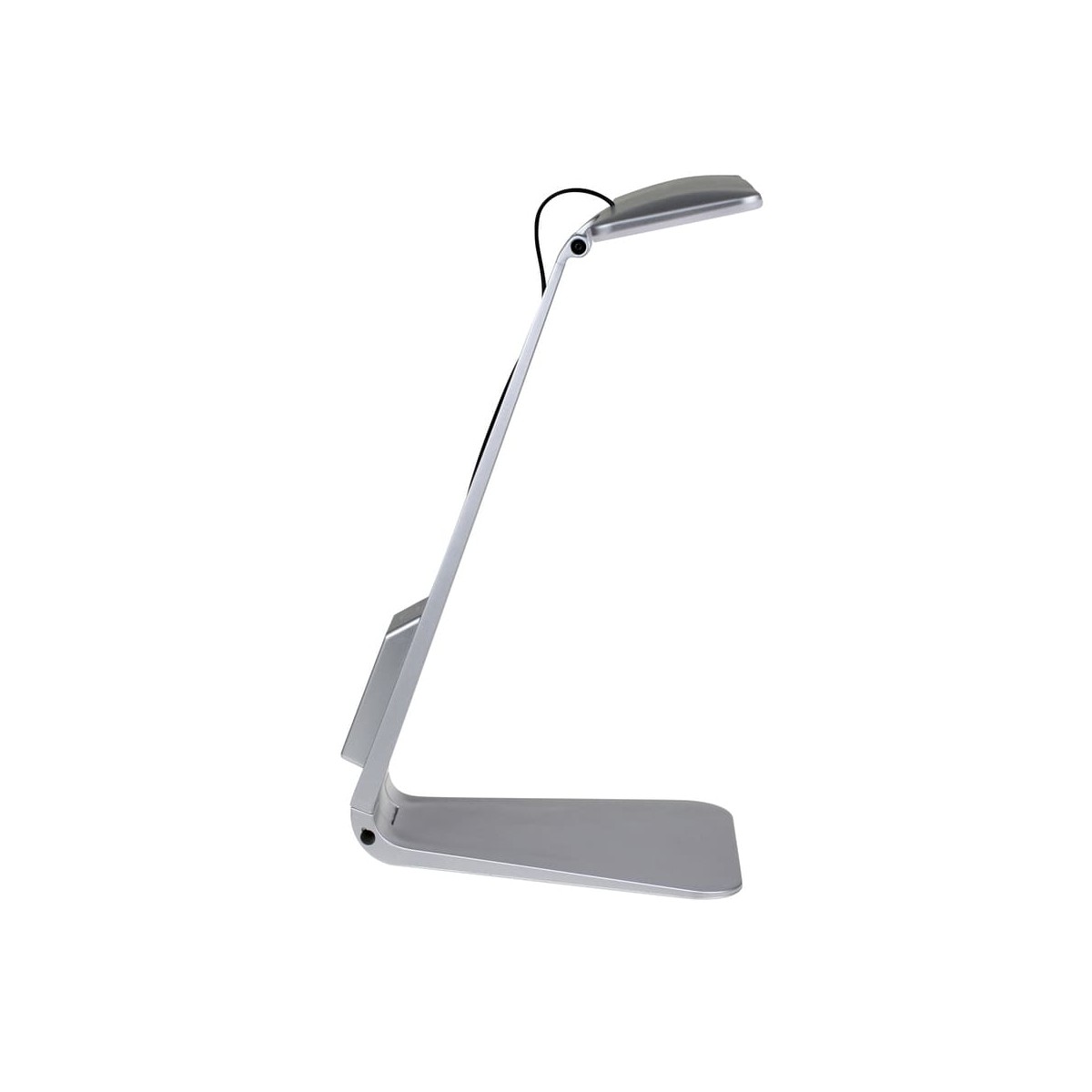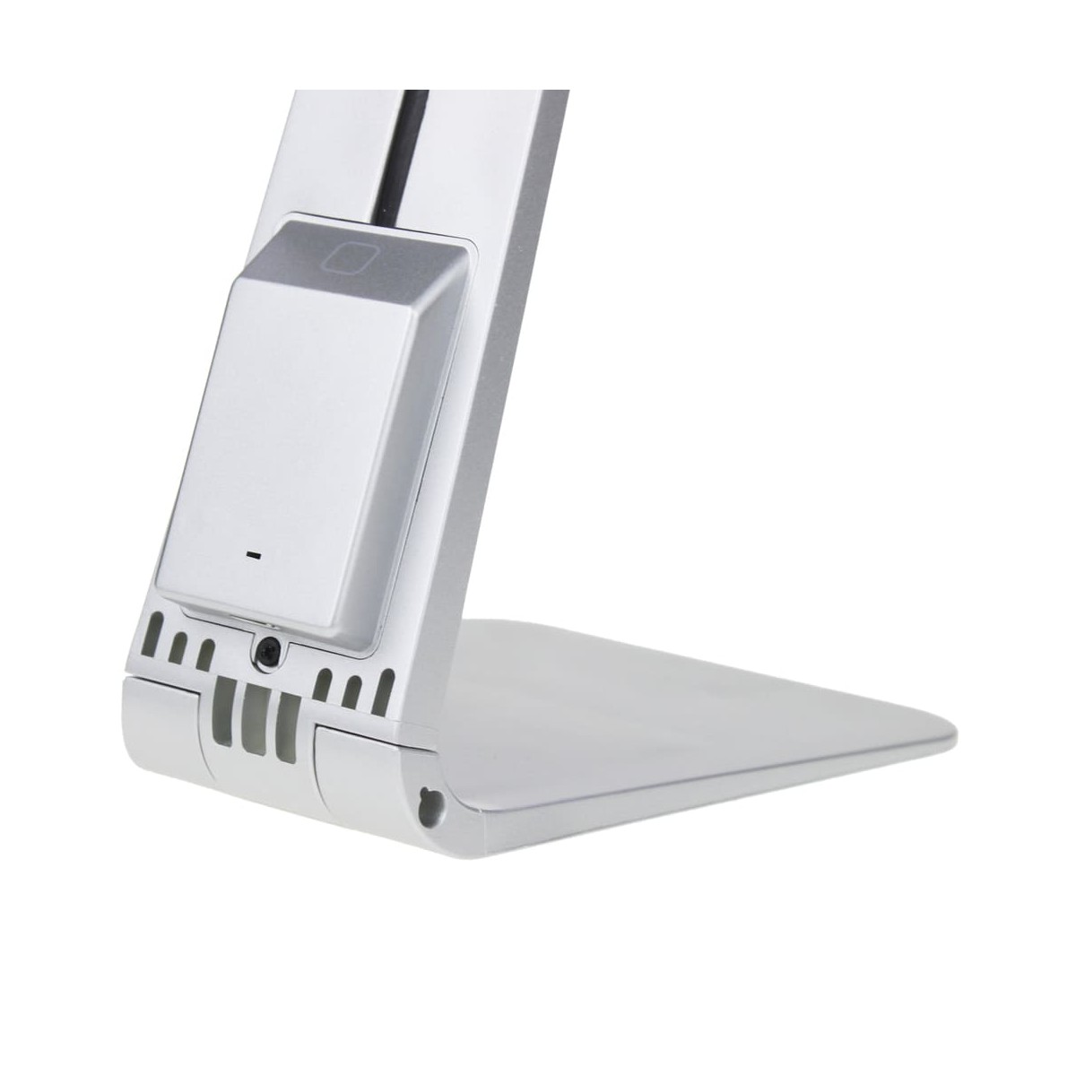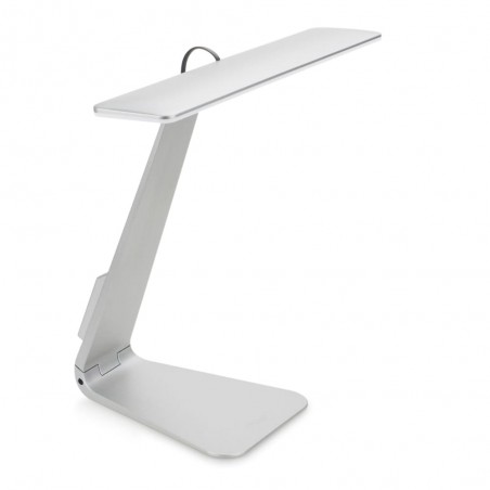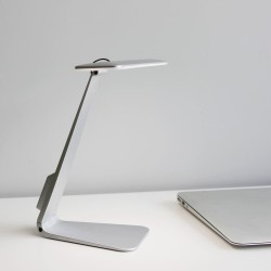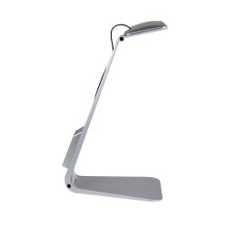 Flexo con luz LED fría para leer y estudiar. Flexo de estilo moderno muy práctico para utilizar como luz de lectura, estudiar o trabajar. Perfecto para colocar en un escritorio o en una mesa de oficina gracias a su minimalista diseño orientable. El flexo lleva iluminación LED en tono blanco frío (6000K), regulable en intensidad de lúmenes son sistema touch. Fabricado con acrílico color plata que le aporta un toque moderno al diseño del flexo. Batería recargable.