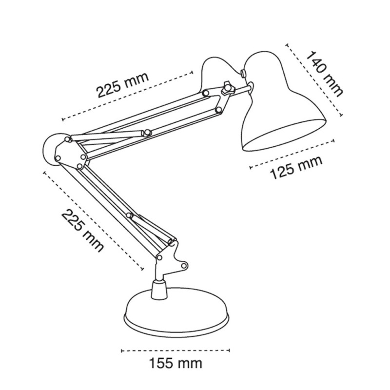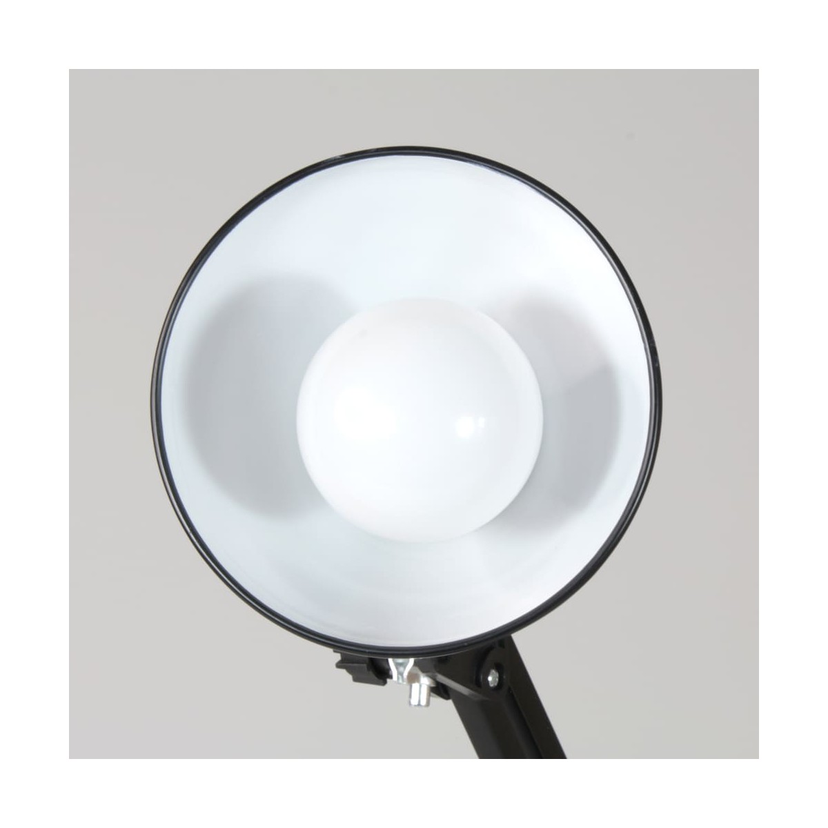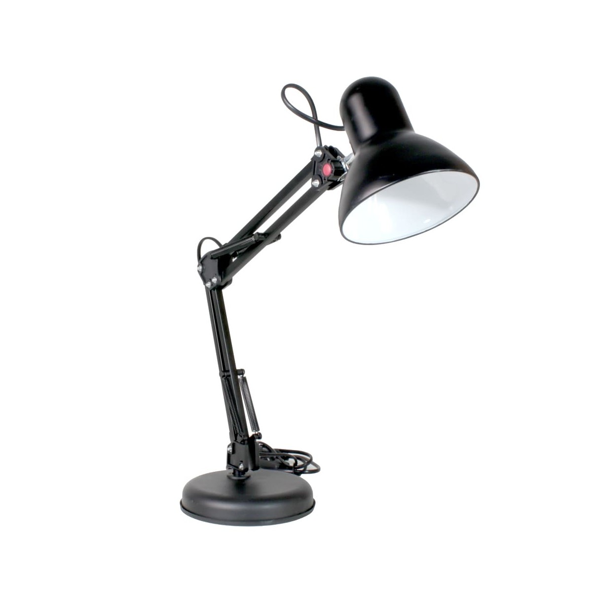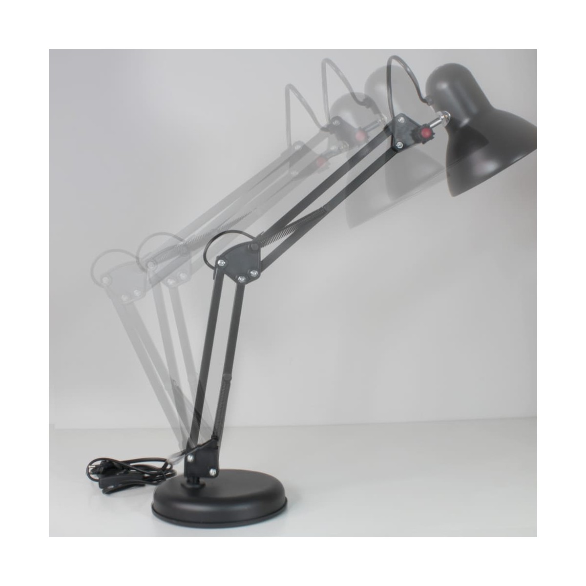 Flexo articulado de metal lacado en negro con base redonda. Apto para bombillas E27. El flexo cuenta con un cable de 110cm y es articulable tanto el cuerpo como el cabezal permitiendo dirigir la luz al punto deseado.