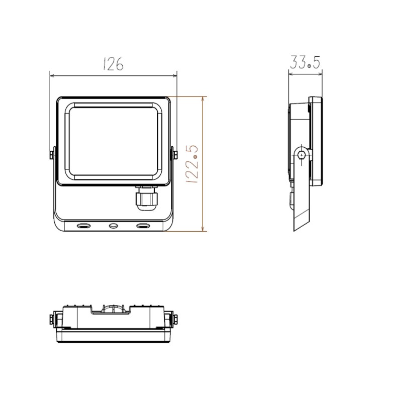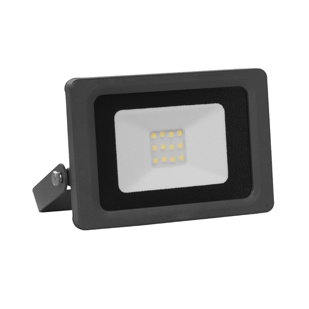 Proyector LED de exterior con IP65, fabricado en aluminio y tapa de vidrio templado. La caja de conexiones esta integrada en el proyector garantizando la máxima seguridad. Potencia de 10W, luz fría (6400K) y fujo luminoso de 800lm.