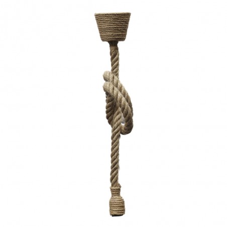 Lámpara colgante rústica para jardines, porches y terrazas. Lámpara de techo fabricada con cuerda natural, ideal para darle un toque rústico a tu terraza o jardín. Puedes colocar tanto una bombilla opal como una vintage en tono ámbar según el toque que le quieras dar. Apta para uso exterior en techos cubiertos. Incluye gancho de montaje. Altura regulable.