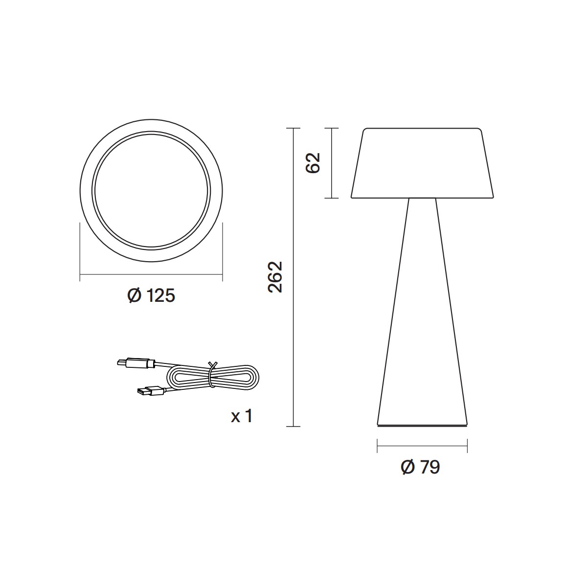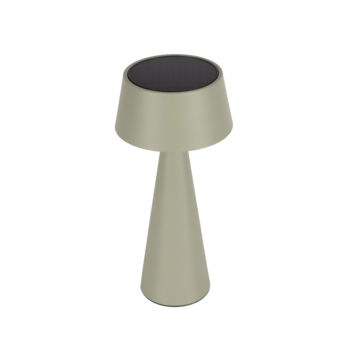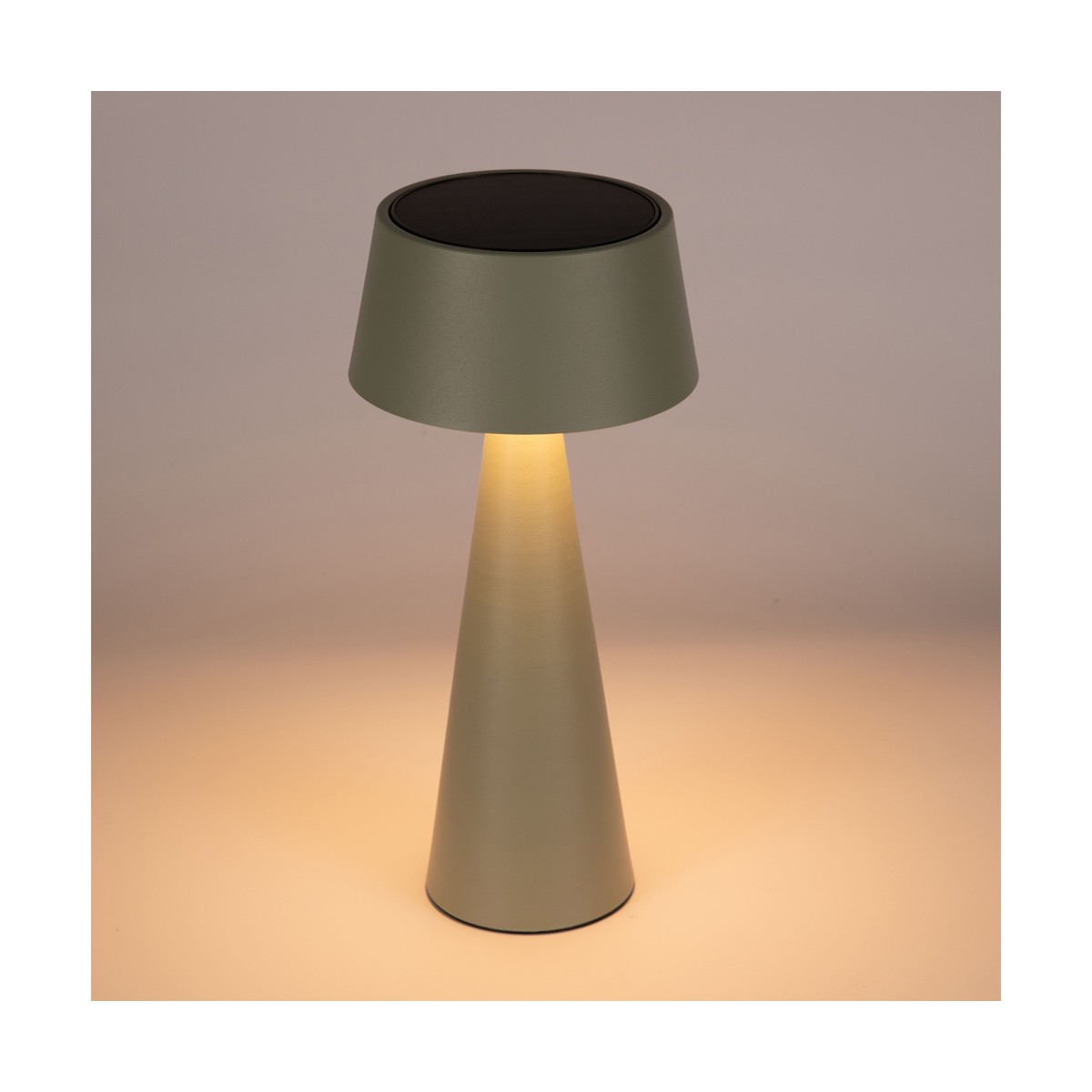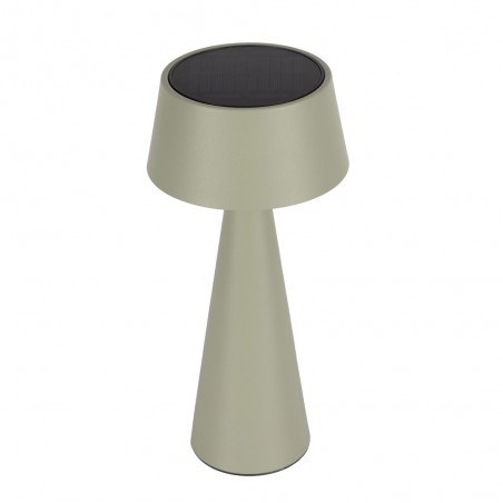 Lámpara de mesa con batería recargable Allua. Lámpara de mesa moderna diseñada para aportar una cálida iluminación en cenas y reuniones al aire libre. La luz se enciende de manera sencilla pulsando en la parte superior de la lámpara, además de poder regular la intensidad. El cabezal es magnético y se puede desmontar de la base. Puedes cargar la batería de la lámpara conectándola a la corriente o con la luz del sol gracias a su panel solar.