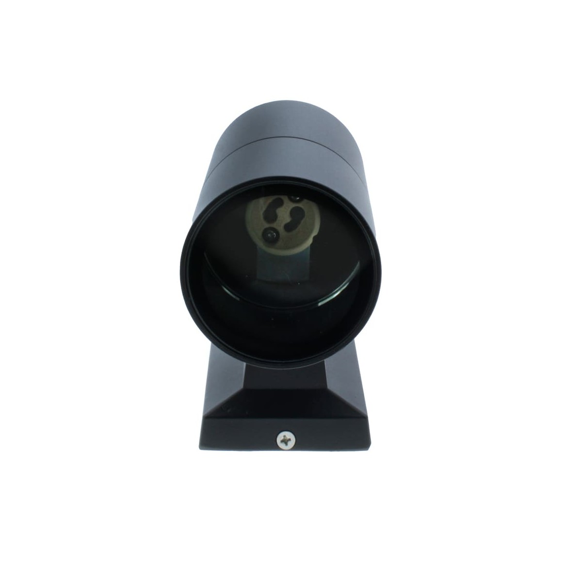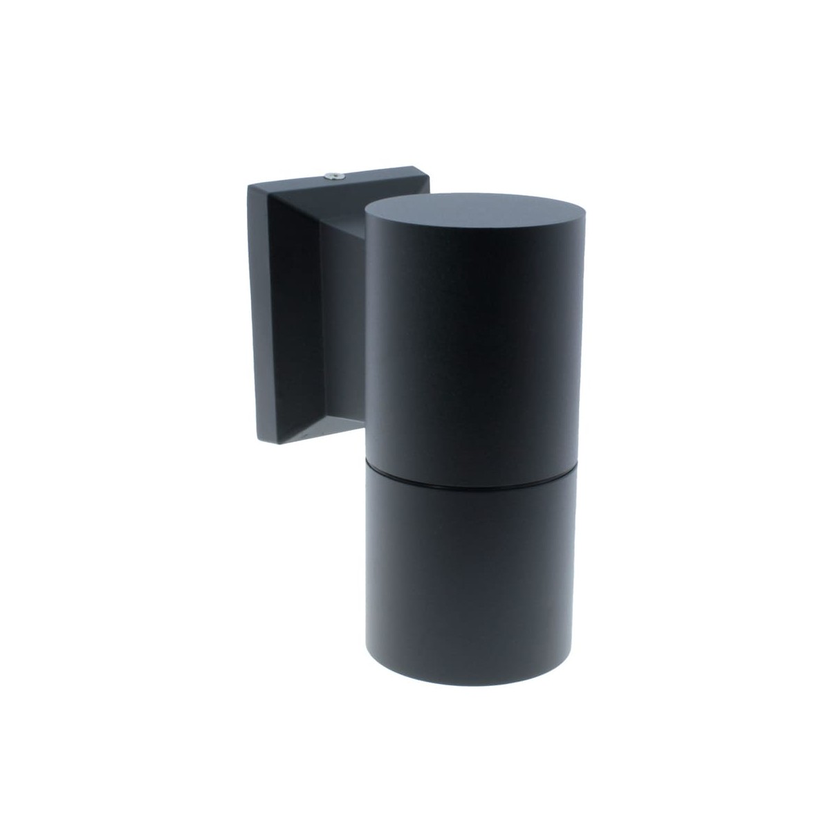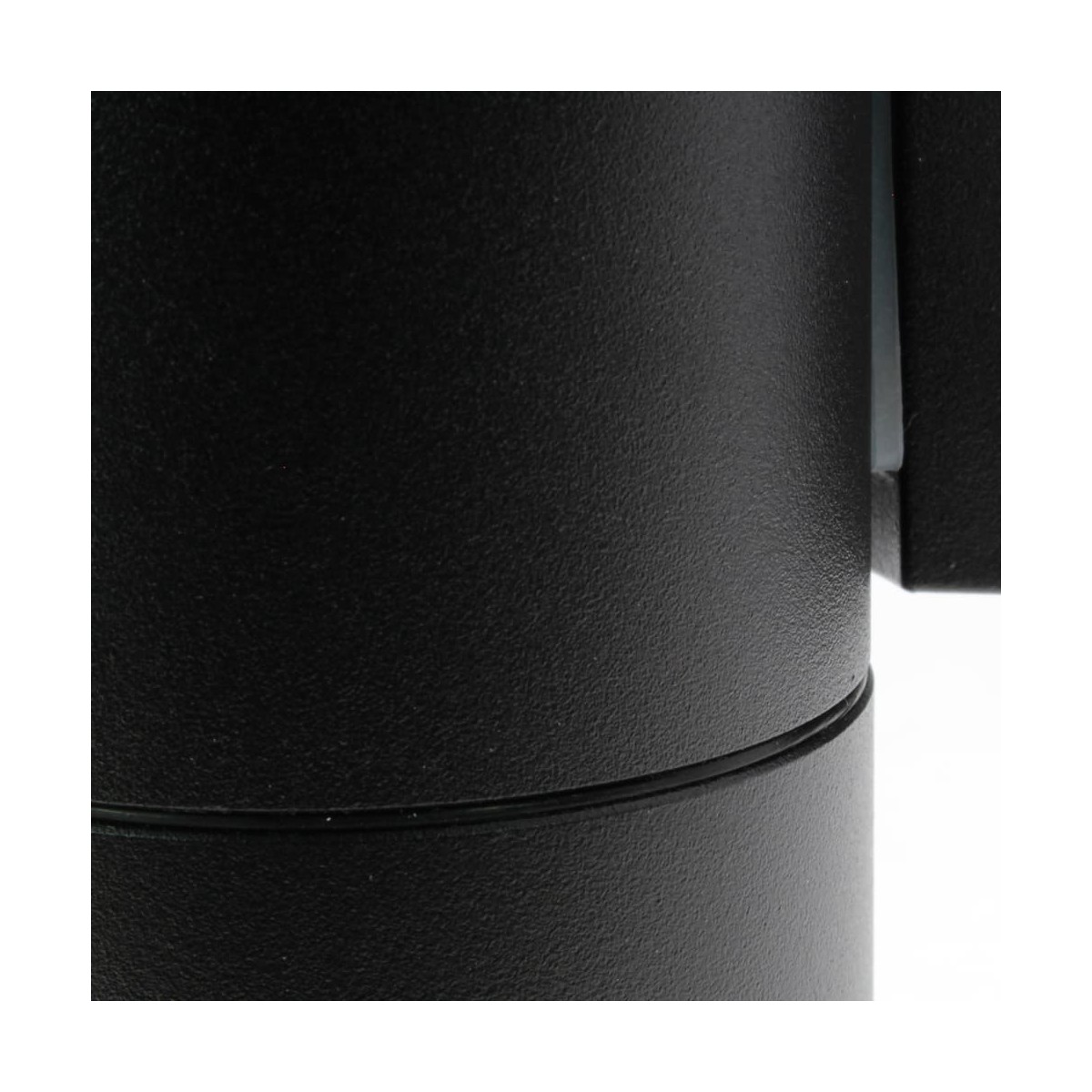 Aplique de pared con una luz apto para tanto para paredes de interior como de exterior de terrazas, jardines y porches. Resistente al agua con IP44. El aplique tiene forma cilíndrica, muy fácil de instalar y cómodo para reemplazar la bombilla. Acabado lacado en negro texturizado. Puedes encontrar el modelo Relax con una o dos luces. Para bombillas GU10. Bombilla no incluida.