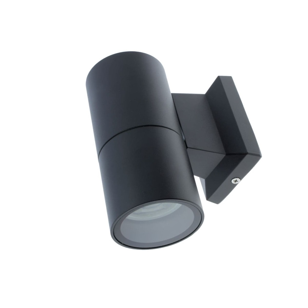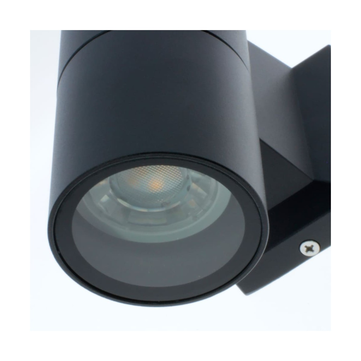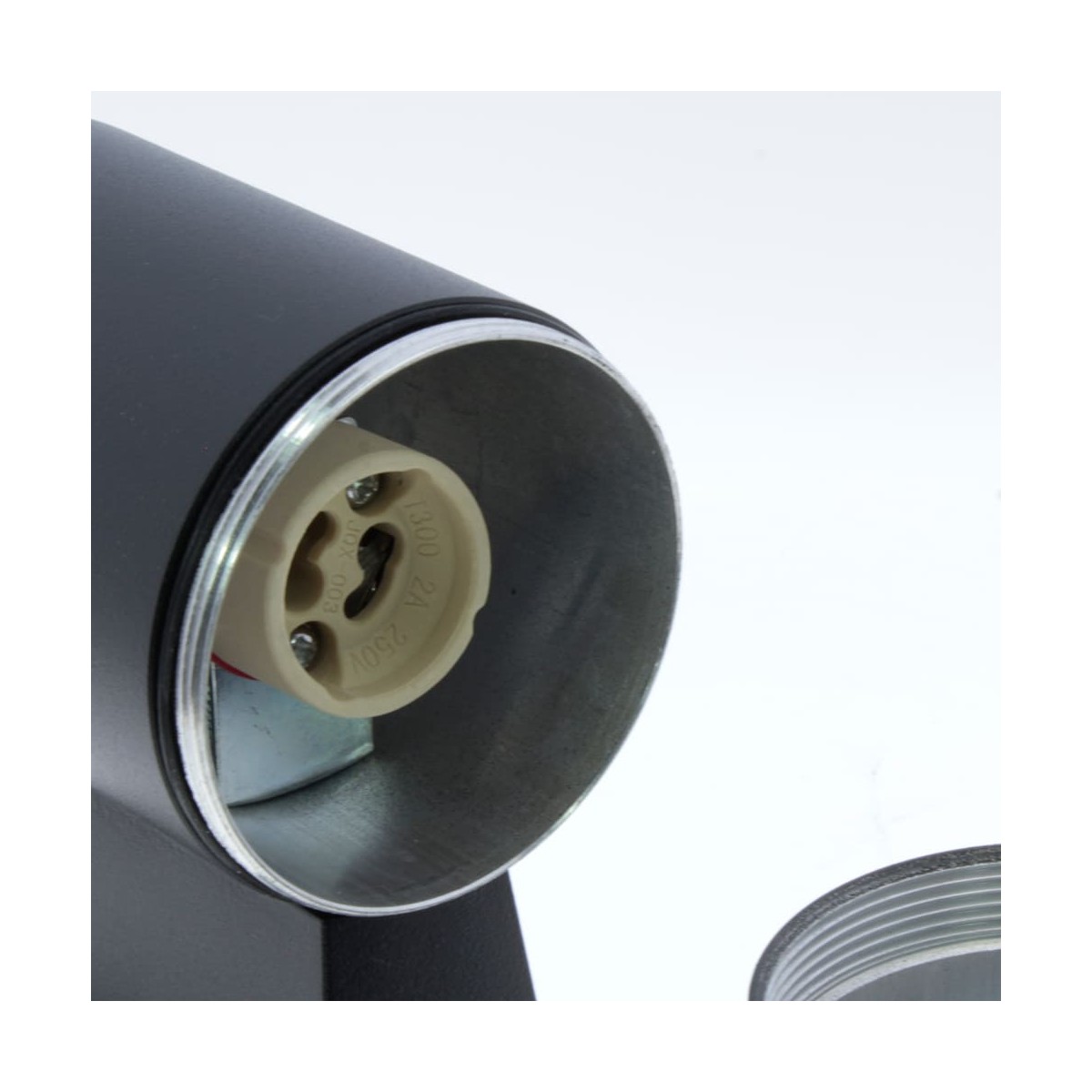 Aplique de pared con una luz apto para tanto para paredes de interior como de exterior de terrazas, jardines y porches. Resistente al agua con IP44. El aplique tiene forma cilíndrica, muy fácil de instalar y cómodo para reemplazar la bombilla. Acabado lacado en negro texturizado. Puedes encontrar el modelo Relax con una o dos luces. Para bombillas GU10. Bombilla no incluida.