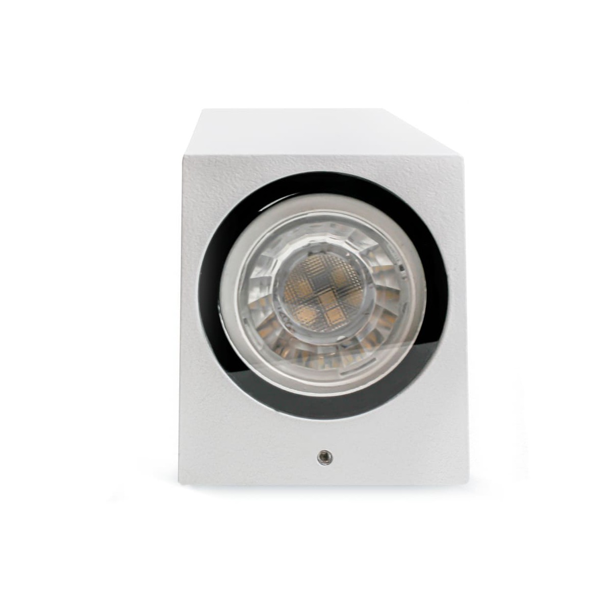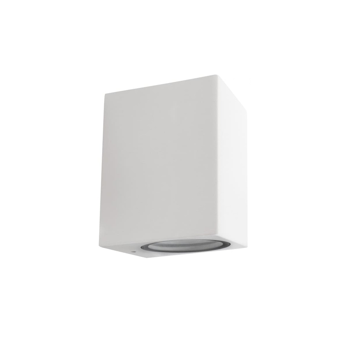 Aplique de pared para iluminación de exterior e interior. Fabricado en aluminio, tiene forma rectangular con acabado lacado en blanco mate. Resistente a salpicaduras con IP44. Fácil de instalar. El aplique Confo puedes encontrarlo disponible con una luz o con dos, para bombillas GU10 no incluidas.