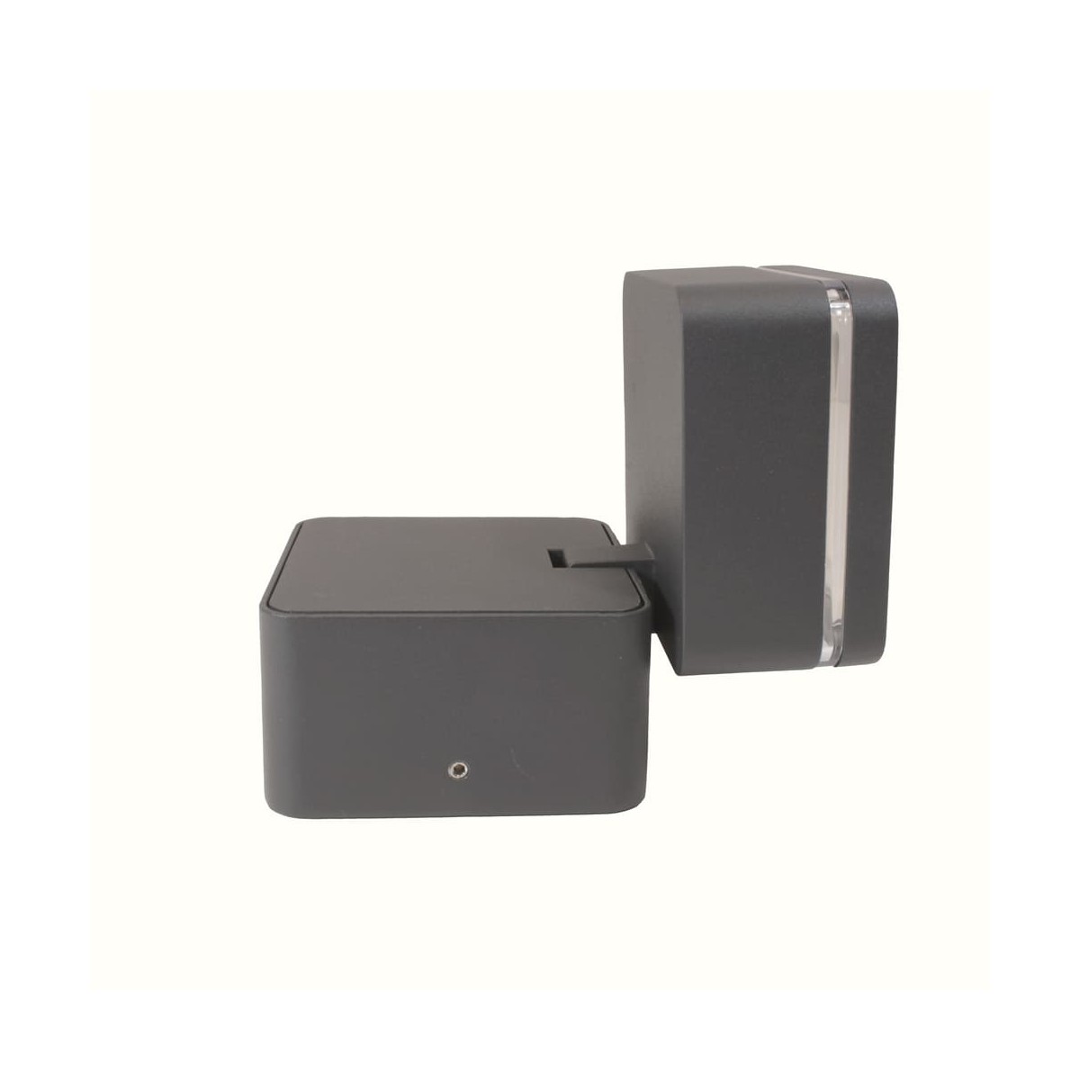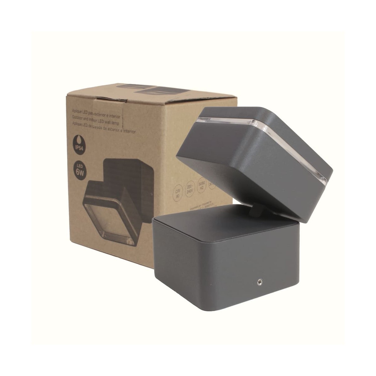 Aplique Led abatible para exterior con IP54. Aplique Tivo cuadrado de 6W con luz neutra y alto flujo luminoso de 450lm. El cuerpo del aplique es abatible 45°. Por su tamaño reducido es perfecto para iluminar terrazas y zonas de paso exteriores estrechas. Puedes encontrar este modelo en redondo y cuadrado. Con acabado en gris antracita.