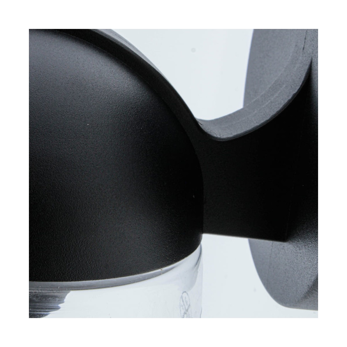 Aplique apto para exterior con IP44. Estructura de aluminio lacado en negro con tulipa de cristal transparente. Para bombilla E27, no incluida. Puedes combinarlo con farol colgante Nera.