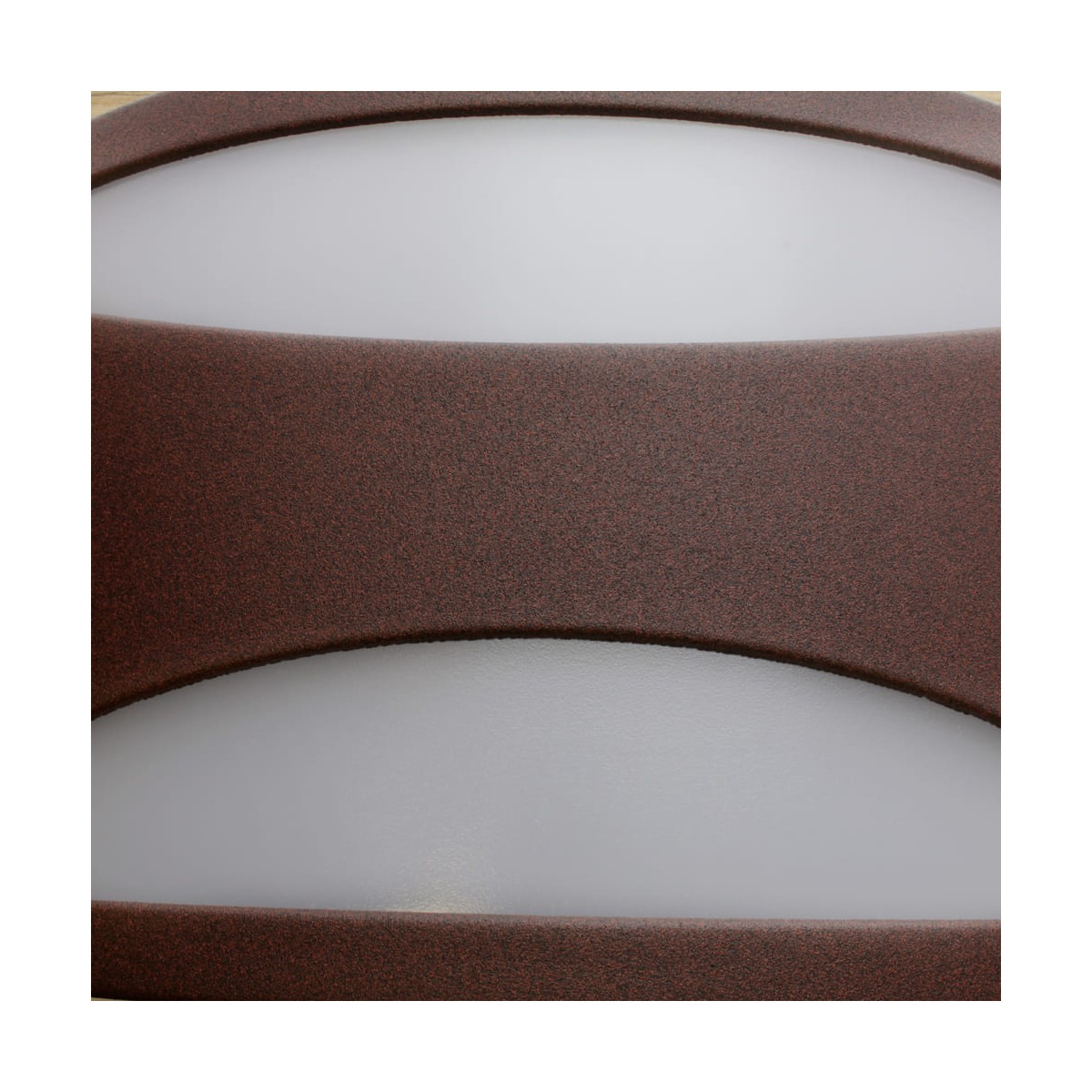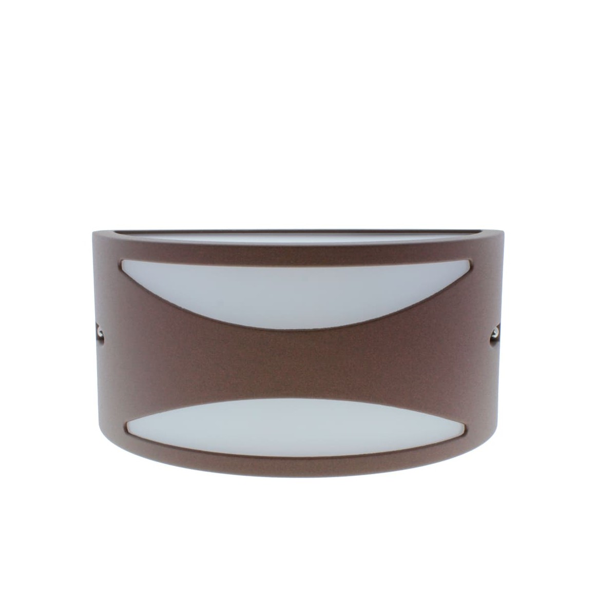 Aplique apto para exterior con IP44. Estructura de aluminio lacado en marrón óxido Con difusor blanco opaco y translucido. Para bombilla E27, no incluida.