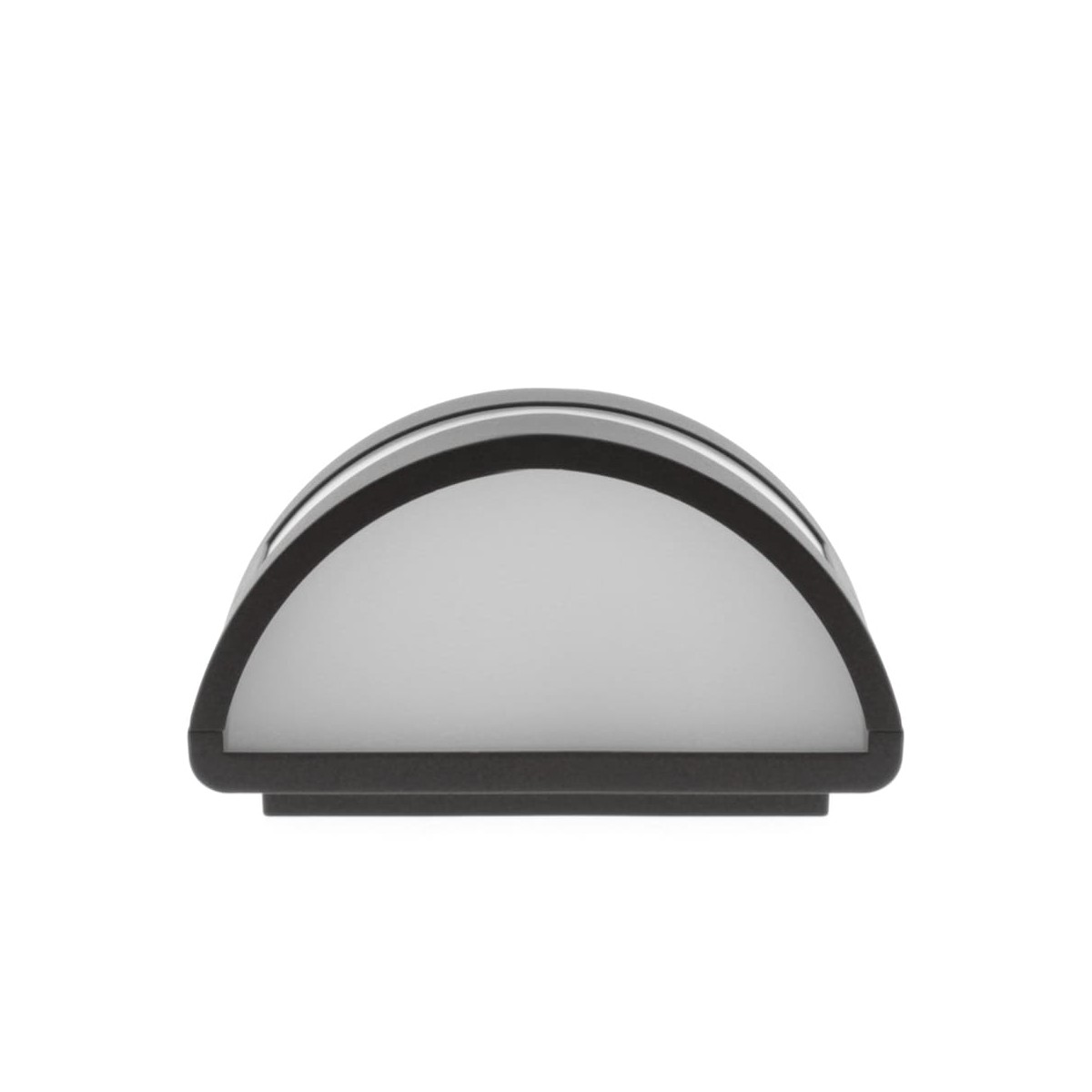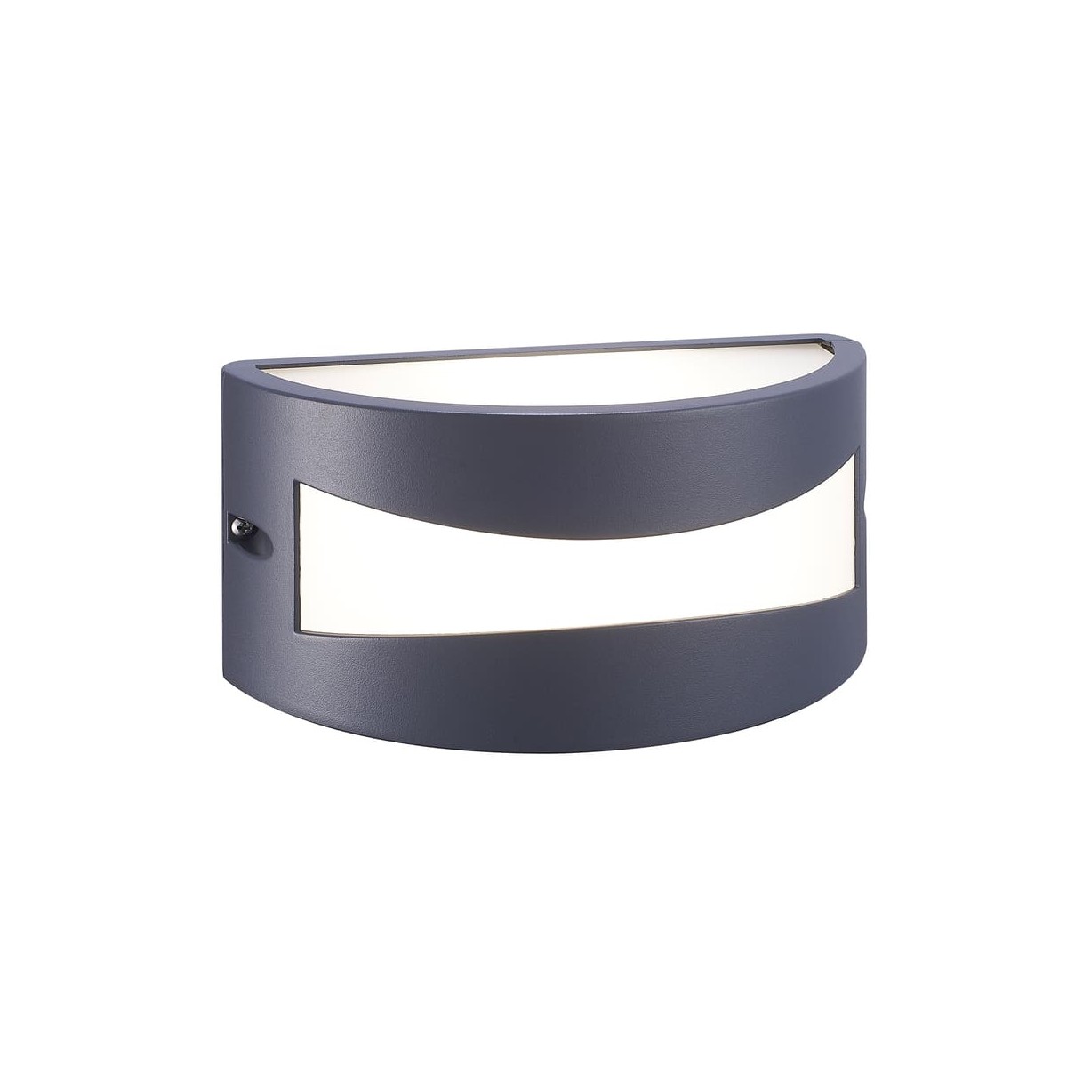 Aplique apto para exterior con IP44. Estructura de aluminio lacado en gris antracita, con difusor blanco opaco y translucido. Para bombilla E27, no incluida.