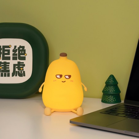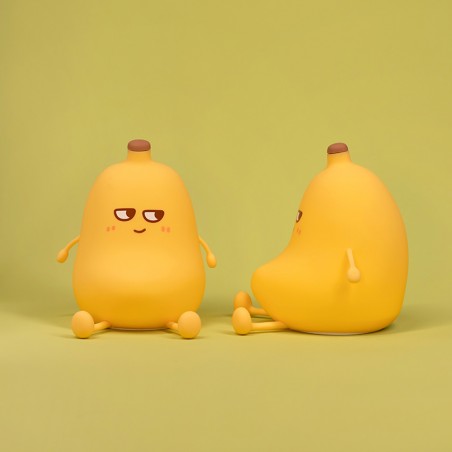 Lámpara infantil luz de noche LED Merlin. Lámpara con forma de simpático plátano amarillo diseñado para que tu hijo/hija no tenga miedo por la noche y duerma tranquilo/a. Mantener pulsado el interruptor situado debajo de la lámpara para encender y apagar la luz. Una vez encendida, pulsar brevemente para regular la intensidad de luz. Puedes activar un temporizador para que la luz se apague a la media hora o a la hora. La lámpara cuenta con batería recargable para transportar fácilmente y utilizar en cualquier lugar de casa.