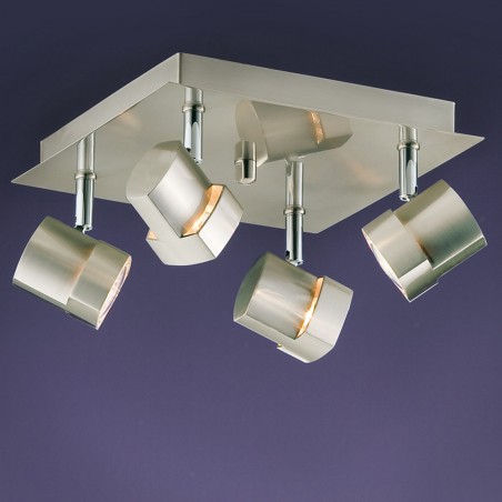 Plafón 4 luces con base cuadrada en acabado satinado para bombillas GU10. Bombillas no incluidas. Compatible con bombilla LED.
