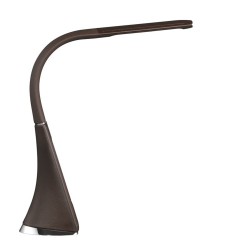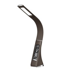 Flexo LED en acabado cuero marrón de 5w y luz fría de 5500K. Flexo con cuerpo flexible que permite regular orientar la luz y elegir entre 3 intensidades. Posee reloj digital e indicador de temperatura. Pila incluida.