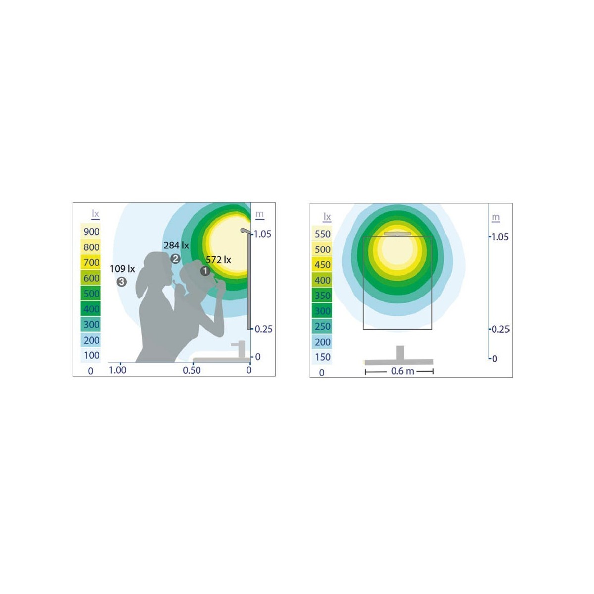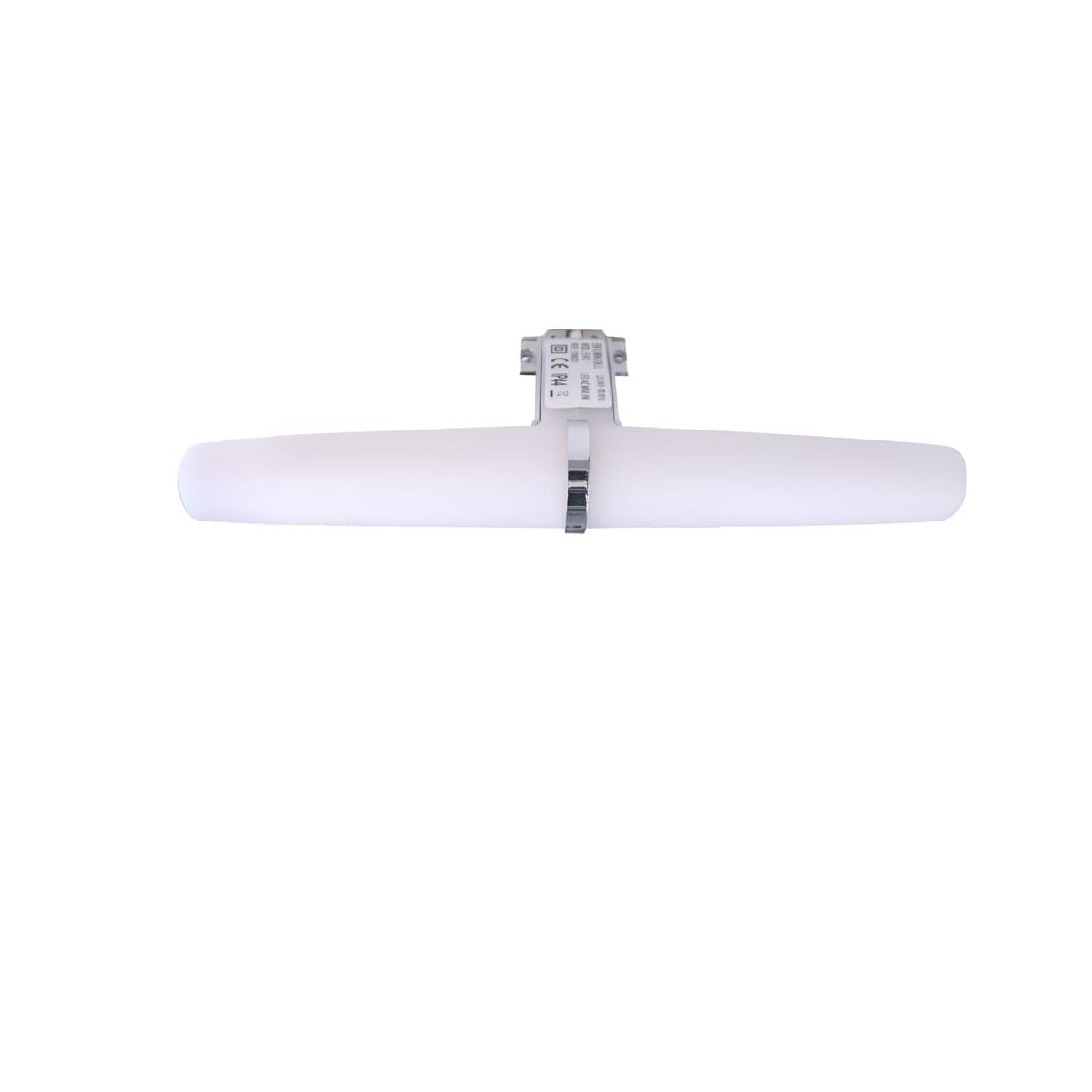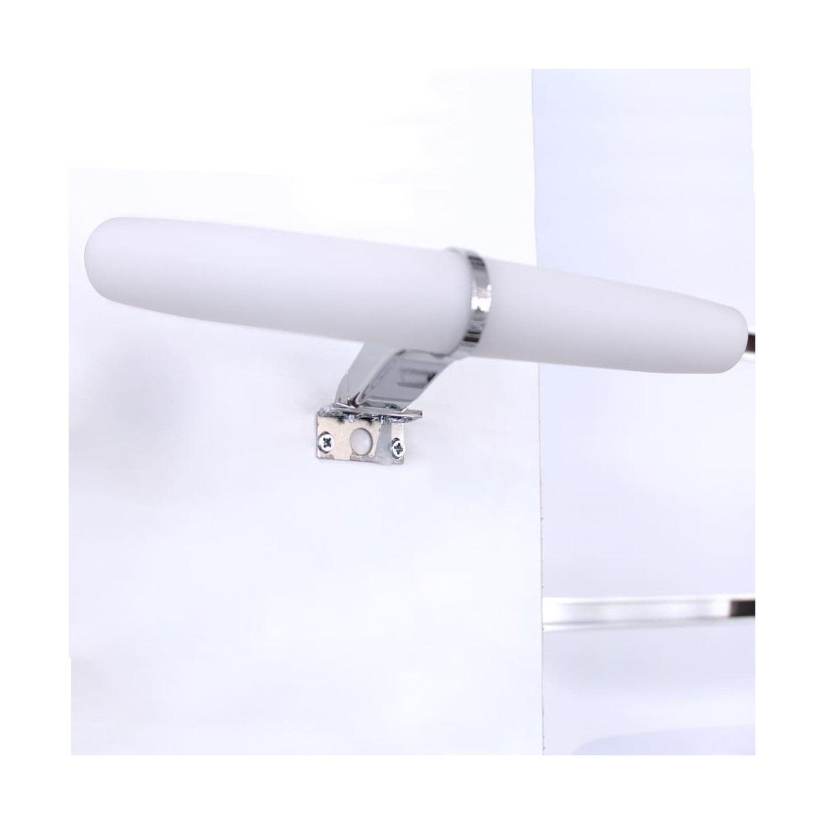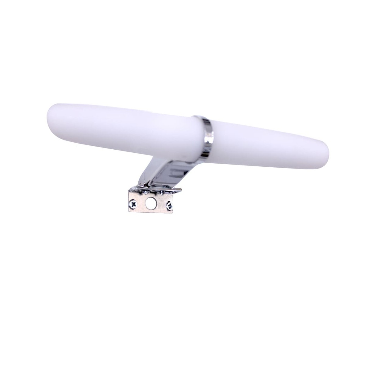 Aplique LED apto para baño con IP44 con acabado cromado. El LED tiene una potencia de 6W, con un color de luz neutra muy agradable de 4000K, flujo luminoso 392lm. Driver integrado. Puede instalarse en armarios, soporte de madera y espejos con pieza multifijación.