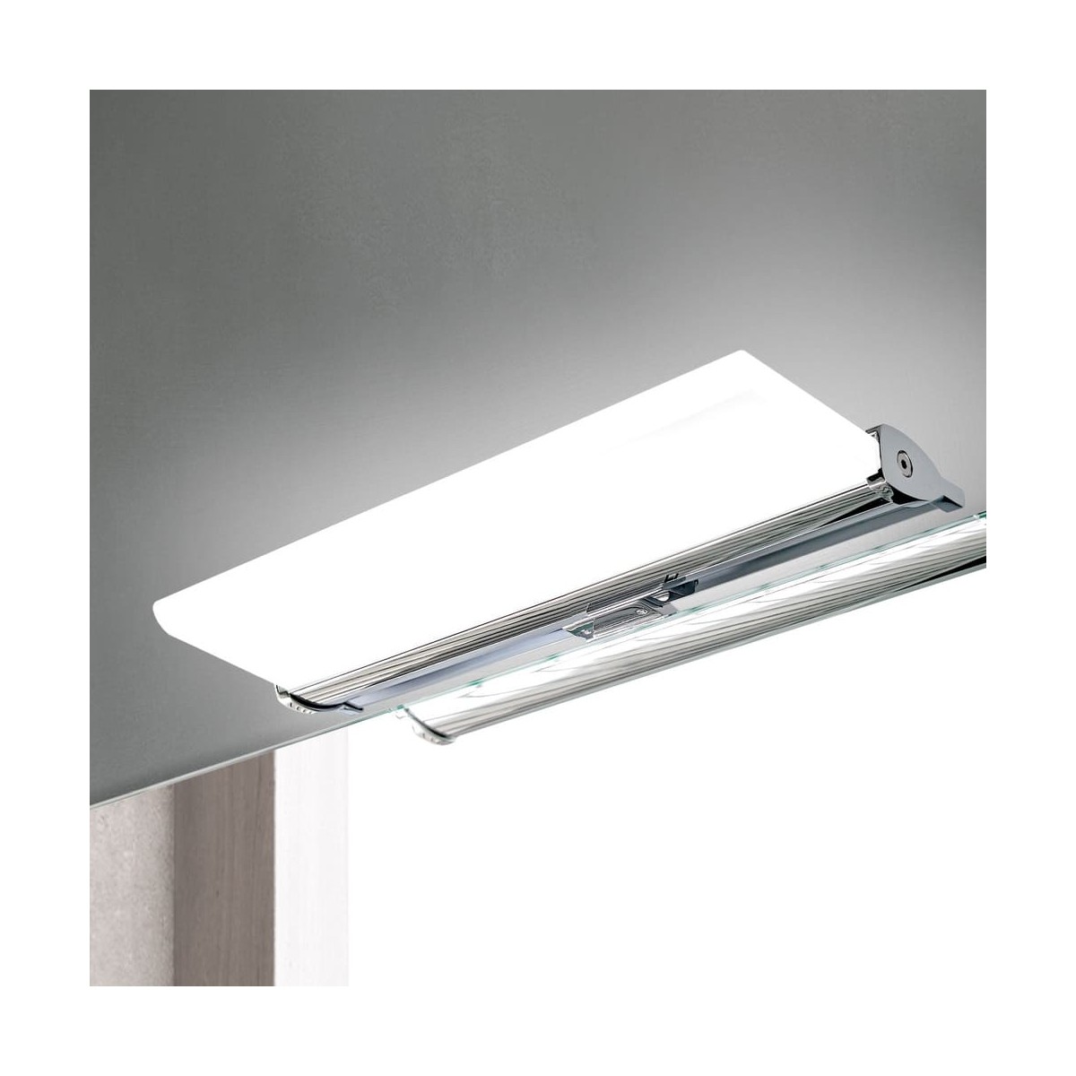 Aplique cromado con difusor blanco mate con iluminción LED integrada de 6W, con luz fría 5300K, 410lm. Driver incluido