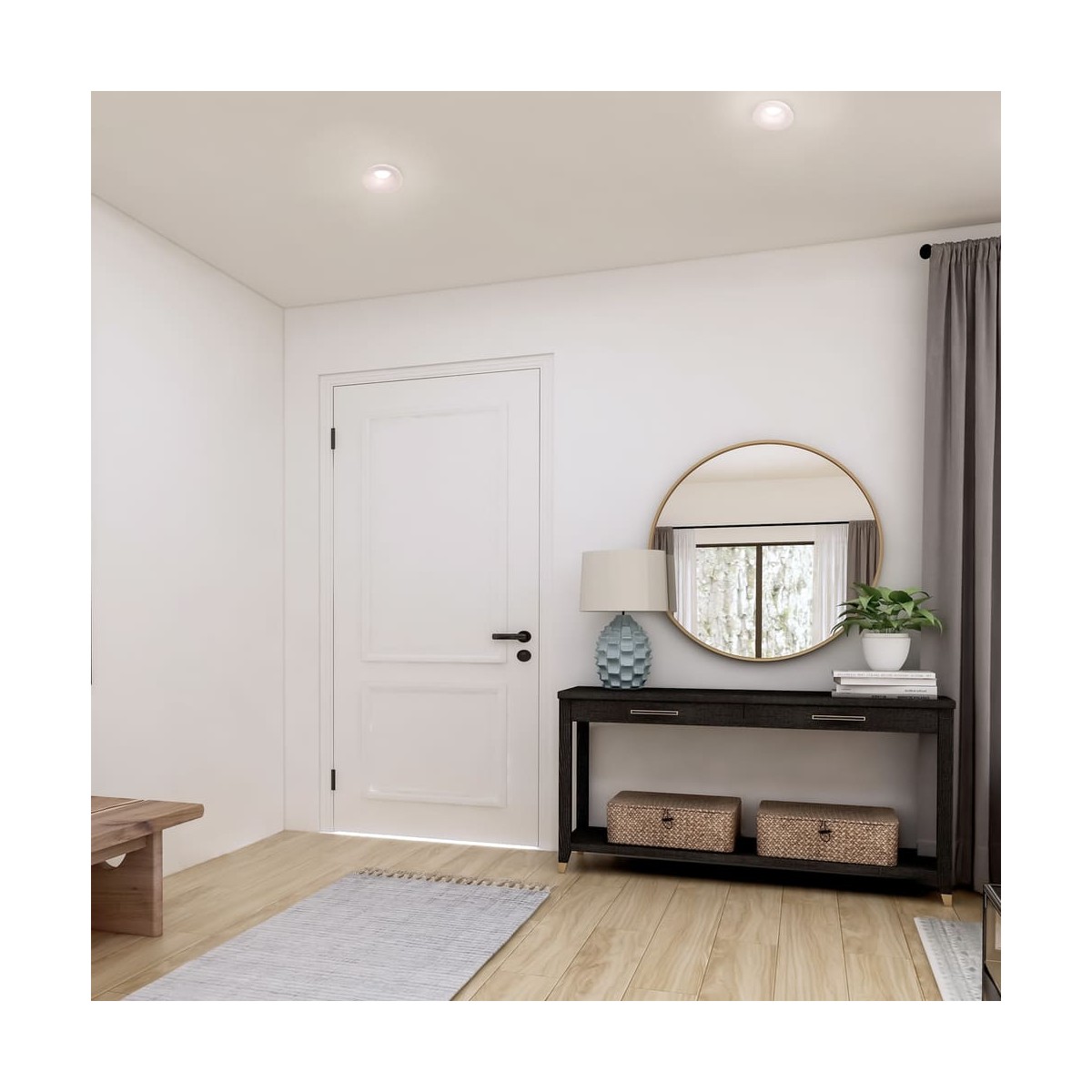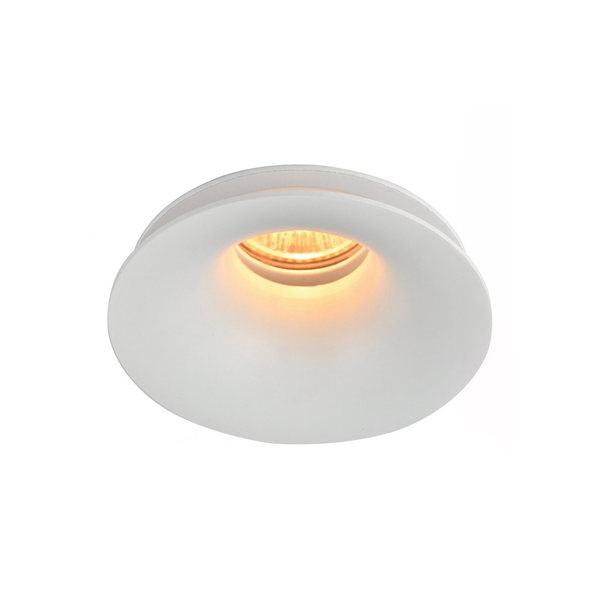 Empotrable redondo de aluminio con acabado en blanco. Con un diámetro exterior de 110mm. Incluye portalamparas GU10.
