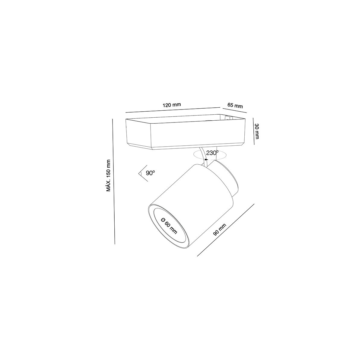 Foco de aluminio de una luz, para bombillas GU10, no incluida. Permite direccionar la luz girando el foco sobre si mismo o moviéndolo verticalmente. Fácil instalacion de la bombilla deserroscando el foco.