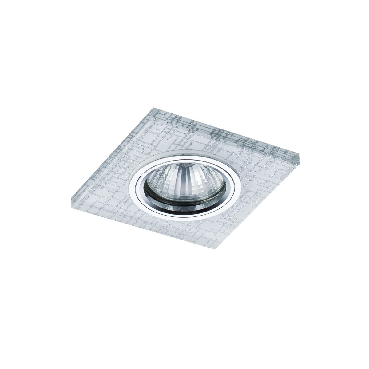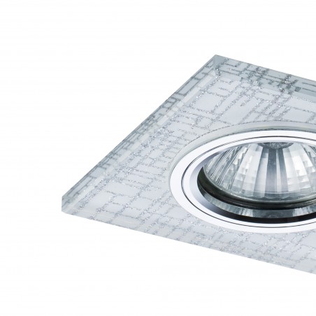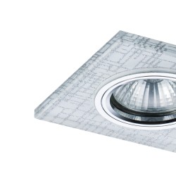 Empotrable de cristal cuadrado. Con iluminación combinada, con LED integrado de 3W con luz neutra. Empotrable decorativo de estilo clásico con detalles plateados en la superficie. Incluye portalámparas GU10. Tres encendidos diferentes.