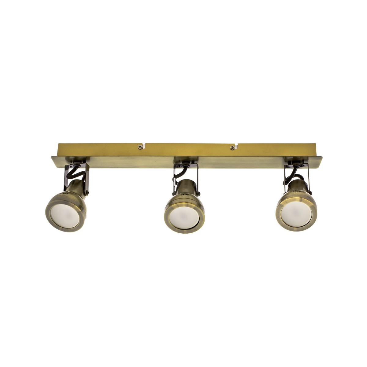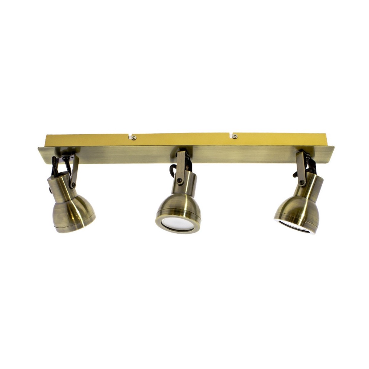 Regleta de techo con tres focos basculantes orientables para bombillas GU10. Fabricado en hierro aporta una calidad inmejorable al plafón, con un acabado en cuero muy elegante. Ideal para salones y comedores. Además el reemplazo de las bombillas (no incluidas en el producto) es muy sencillo, unicamente se debe desenroscar el aro del foco y una vez cambiada la bombilla volver a ponerlo.