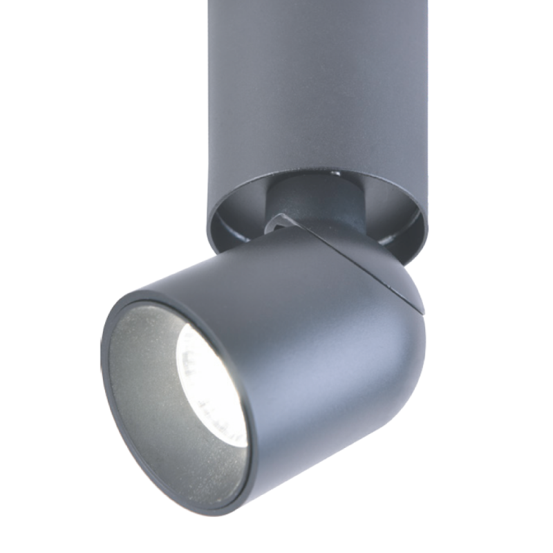 Foco de superficie orientable de color negro. Foco LED orientable diseñado para iluminar un punto concreto con la luz focalizada que emite. Puedes orientar el punto de luz en un ángulo de giro de 180º para dirigir la luz hacia el punto que se quiera iluminar. Fácil instalación directamente en superficie. LED de 8W, 900 lúmenes y 4000K.