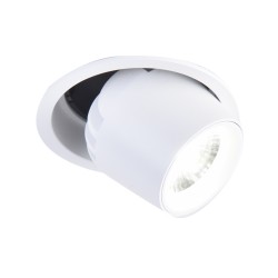 Empotrable de techo blanco con foco orientable. Práctico empotrable de techo con punto de luz el cual puedes dejar escondido en el techo o sacarlo ligeramente. De este modo, la luz se proyecta directamente hacia abajo como un empotrable convencional o puedes dirigir la luz hacia uno de los lado. Ángulo de basculación de 30º. El empotrable lleva iluminación LED integrada de 8W en tono blanco neutro. Fabricado en metal de color blanco.
