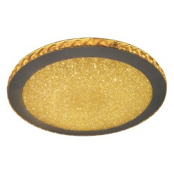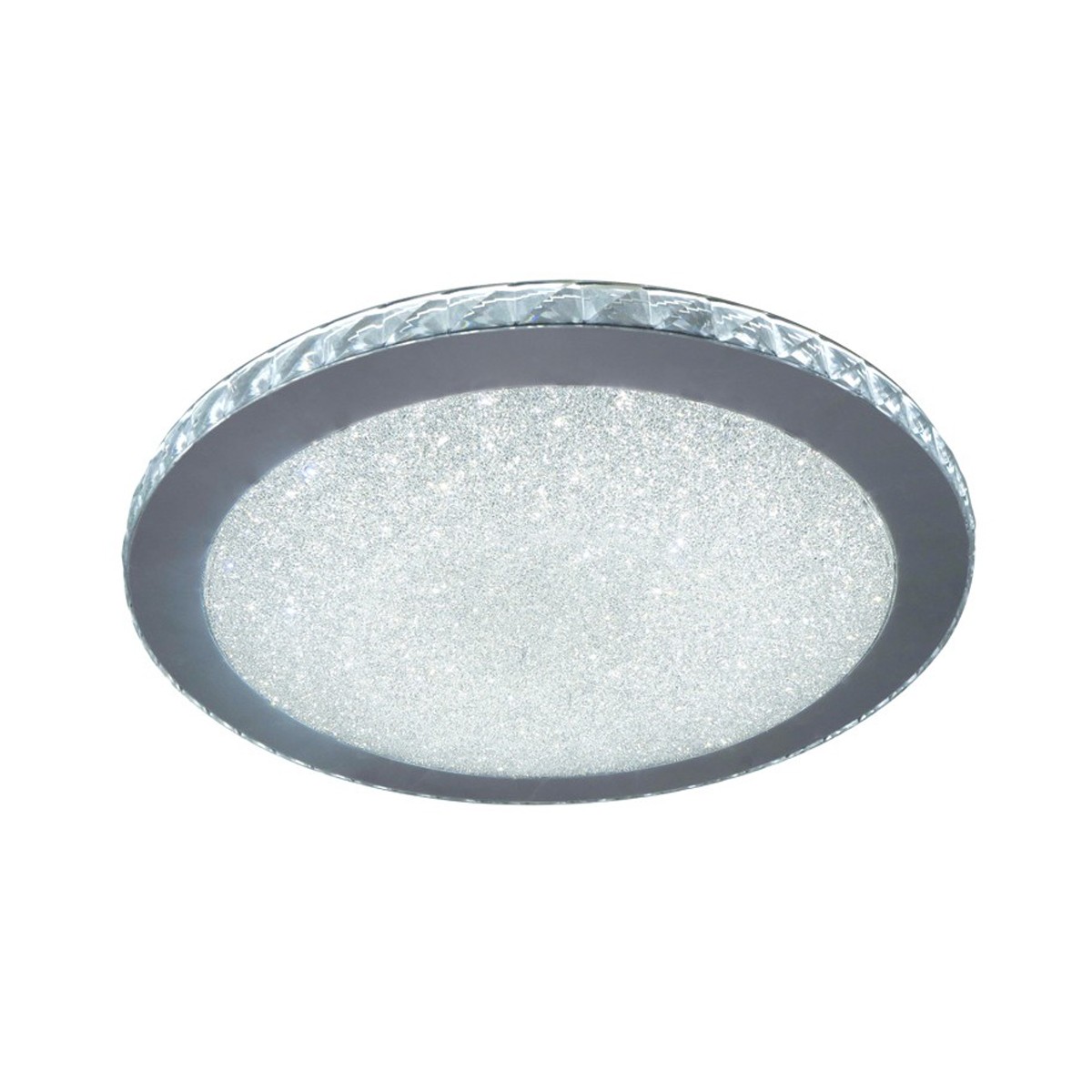 Plafón de techo con iluminación LED de 60W, con tres temperaturas, regulable en intensidad con función de memoria. Incluye mando a distancia que permite guardar dos configuraciones de iluminación. Difusor con efecto cristal