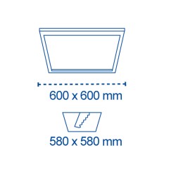 Panel LED cuadrado para la iluminación de oficinas, lugares de trabajo y otros espacios contract. El panel es cuadrado con un marco de aluminio blanco y un difusor de acrílico opal. Lleva integrada iluminación LED con un driver LIFUD de alta calidad que permite un eficiente rendimiento y un bajo consumo de luz. Temperatura de color blanca neutra (4000K) con una intensidad de 4350 lúmenes. EL panel se instala empotrado en el techo (580x580mm.)
