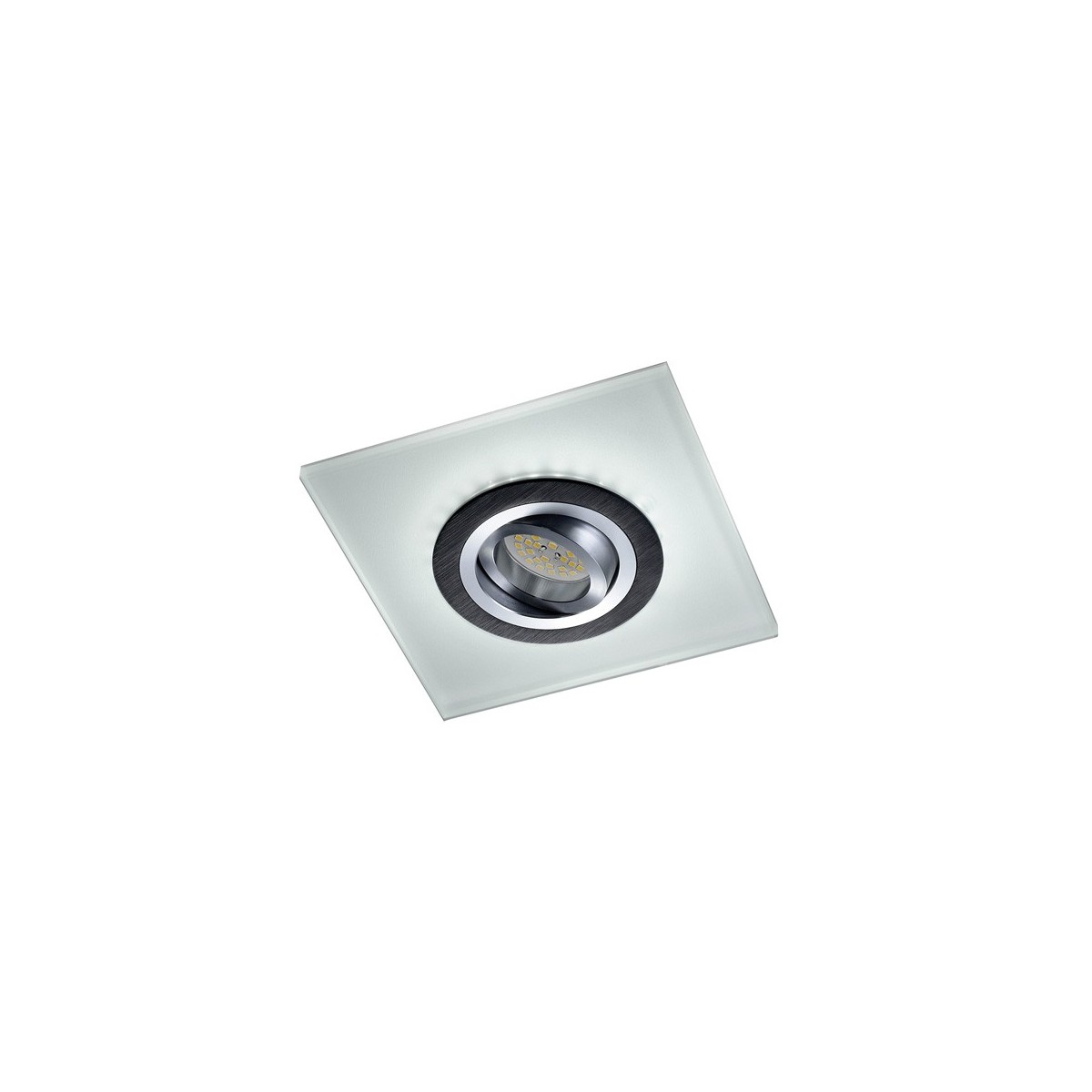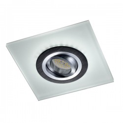 Empotrable basculante redondo en acabado wengue con placa de cristal cuadrada, iluminación doble. Incluye portalámparas GU5.3 y GU10. Driver no incluido.