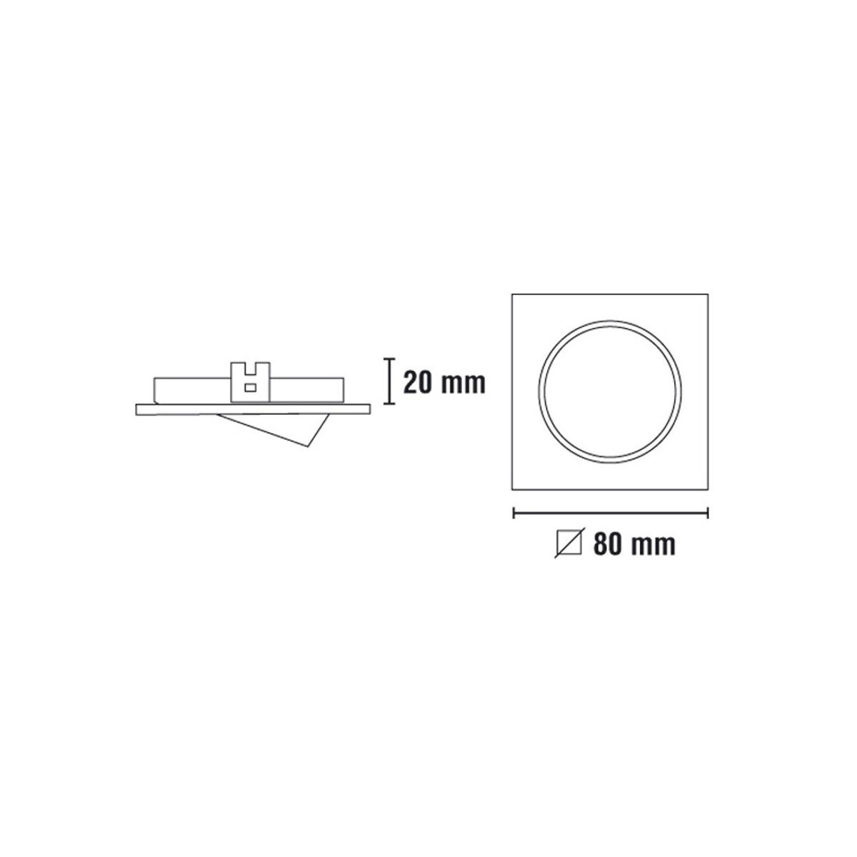 Foco empotrable cuadrado realizado en aluminio color cromo y portalámparas GU5.3. Ángulo de basculación de 30º para orientar la luz al punto deseado. Perfecto para iluminación en pasillos, salones, dormitorios o comercios.