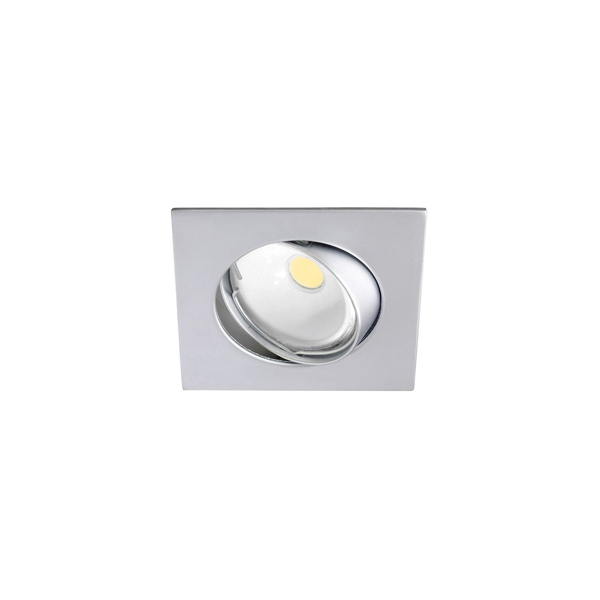 Foco empotrable cuadrado realizado en aluminio color acero y portalámparas GU5.3. Ángulo de basculación de 30º para orientar la luz al punto deseado. Perfecto para iluminación en pasillos, salones, dormitorios o comercios.