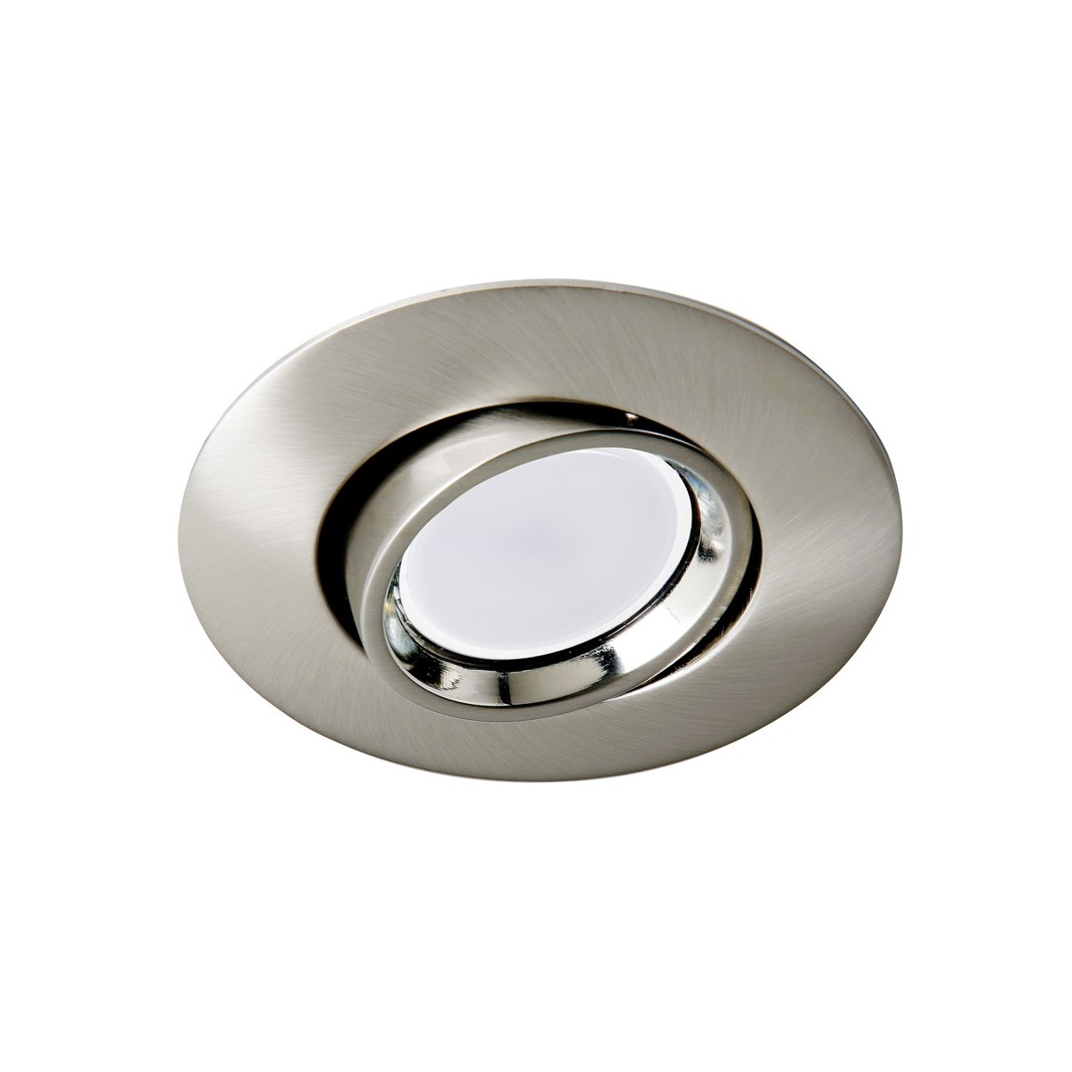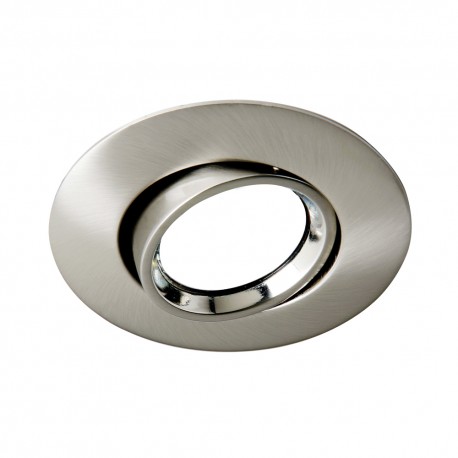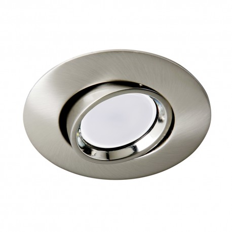 Foco empotrable redondo realizado en aluminio color níquel y portalámparas GU5.3. Ángulo de basculación de 45º pudiendo orientar la luz al punto deseado. Perfecto para iluminación en pasillos, salones, dormitorios o comercios.