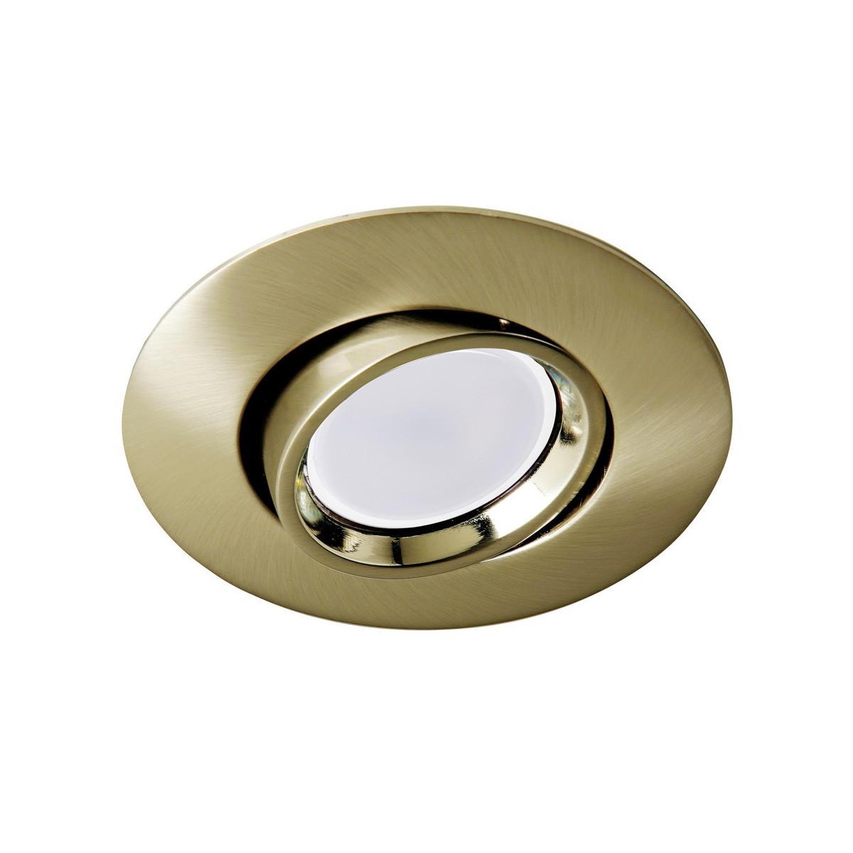 Foco empotrable redondo realizado en aluminio color oro viejo y portalámparas GU5.3. Ángulo de basculación de 45º pudiendo orientar la luz al punto deseado. Perfecto para iluminación en pasillos, salones, dormitorios o comercios.