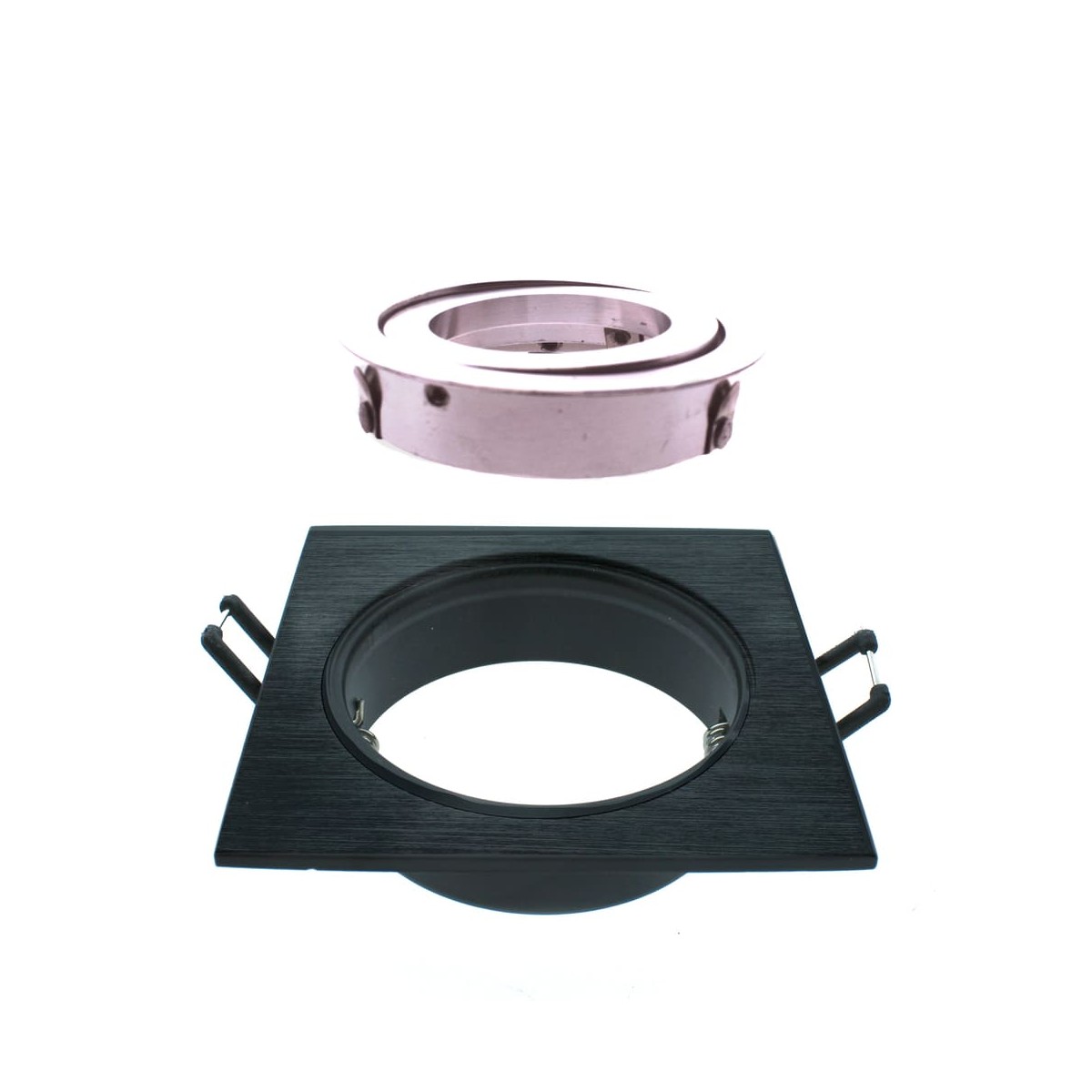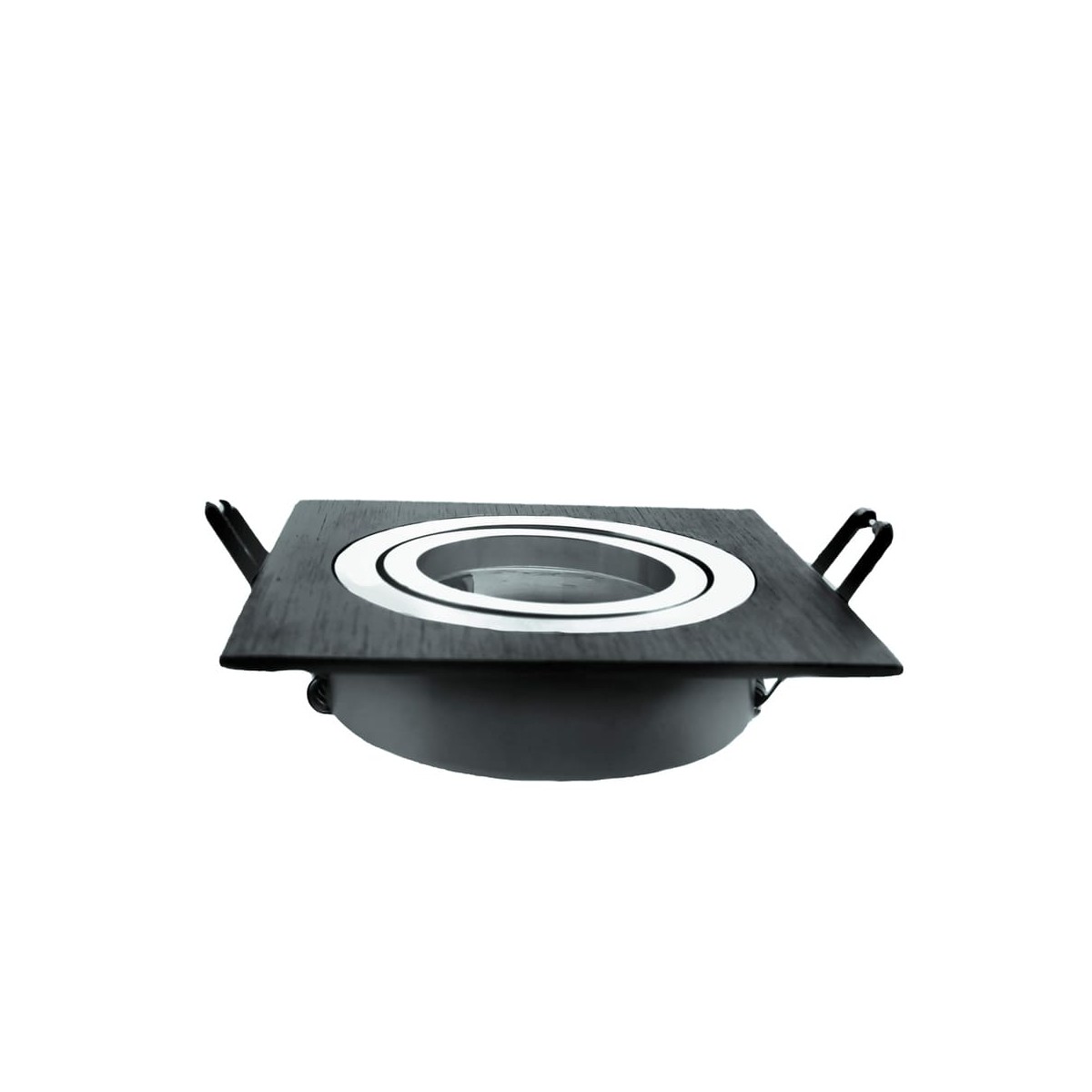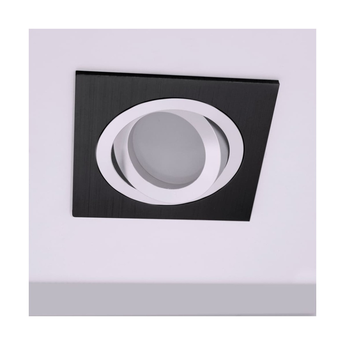 Foco empotrable para el techo cuadrado acabado negro. Incluye portalámparas GU5.3. Ángulo de basculación de 30º. Perfecto para iluminación en pasillos, salones, dormitorios, comercios, tiendas de moda, restaurantes, etc... *Bombilla no incluida.