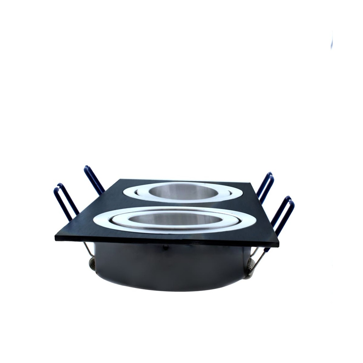 Foco empotrable para el techo cuadrado acabado negro. Incluye portalámparas GU5.3. Ángulo de basculación de 30º. Perfecto para iluminación en pasillos, salones, dormitorios, comercios, tiendas de moda, restaurantes, etc…