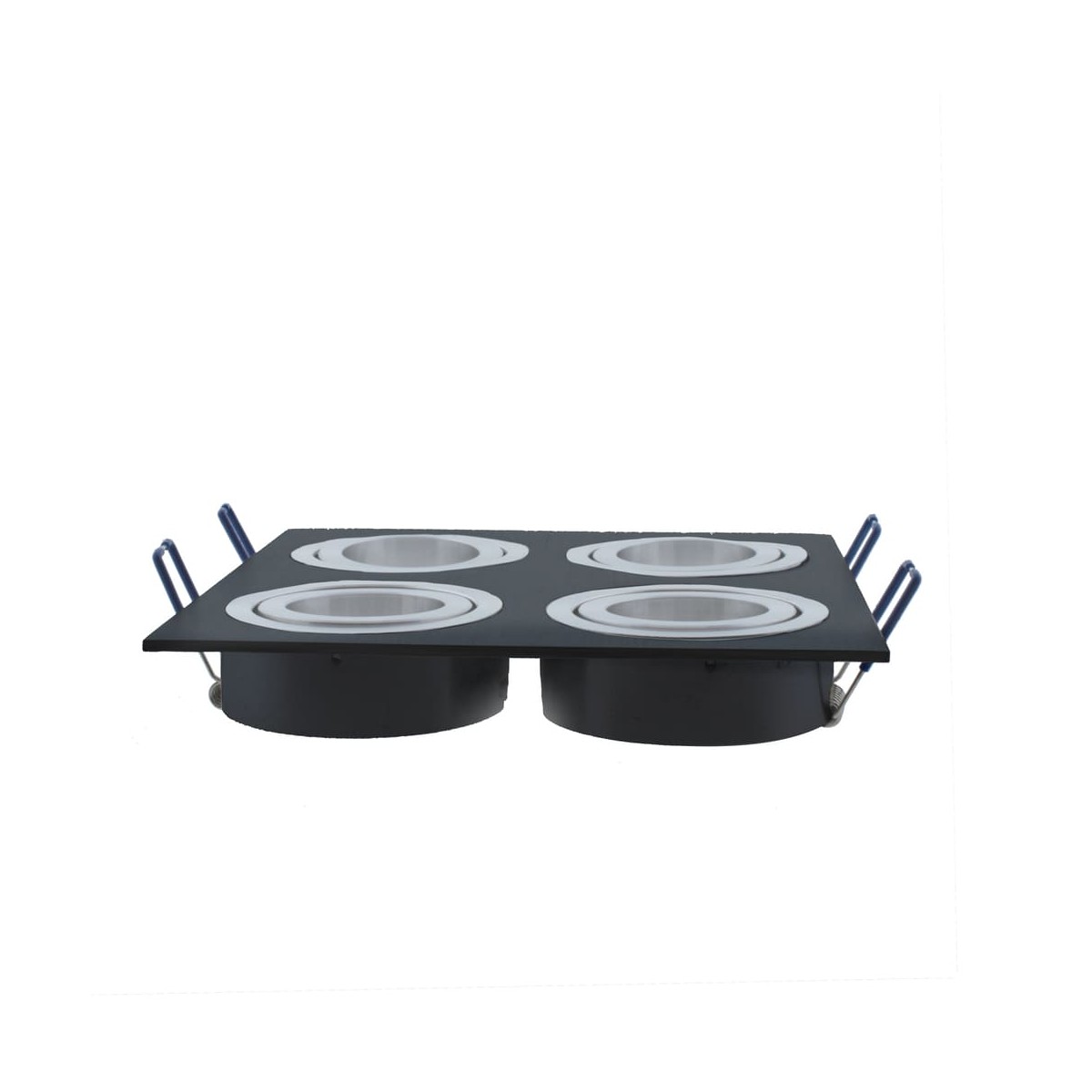 Foco empotrable para el techo cuadrado acabado negro. Incluye portalámparas GU5.3. Ángulo de basculación de 30º. Perfecto para iluminación en pasillos, salones, dormitorios, comercios, tiendas de moda, restaurantes, etc... *Bombilla no incluida.