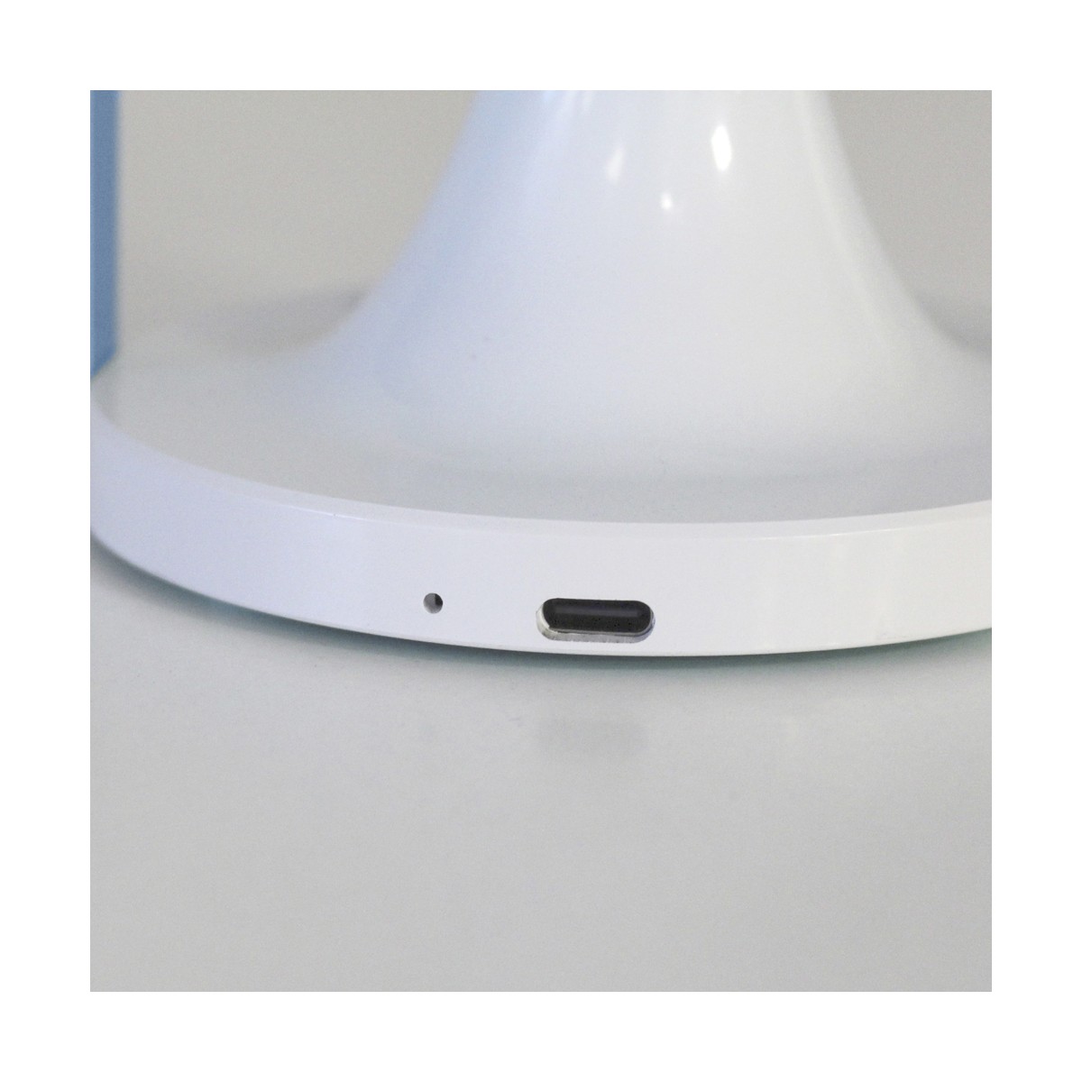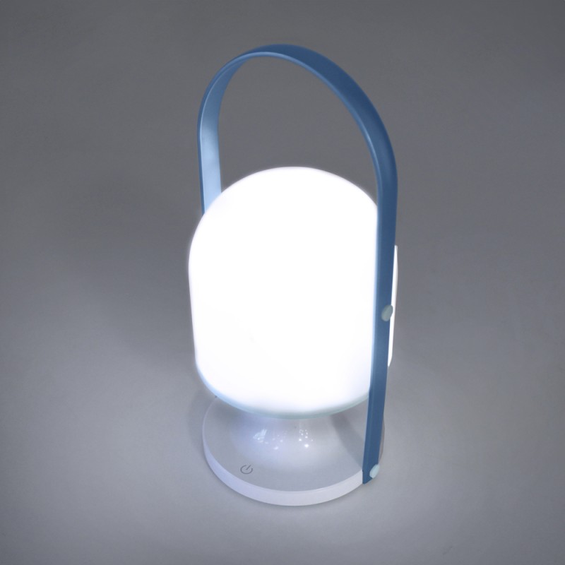 Lámpara de mesa recargable para dormitorios. Esta lámpara de mesa ofrece un práctico diseño al contar con batería recargable y asa para transportarla fácilmente. De este modo, puedes colocar la lámpara sobre cualquier mesa o mueble de tu hogar como iluminación. Cuenta con tecnología LED de 3W y luz cálida, permitiendo aportar una acogedora iluminación junto a la cama o un sofá.