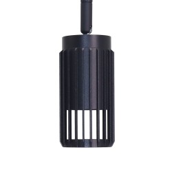 Lámpara de mesa moderna Sahara. Fabricada en aluminio acabado negro arenado. Diseño minimalista pero innovador con foco cilíndrico en relieve y mitad rejilla abierta. Ideal para colocar en la mesita de noche en la habitación o en una mesa auxiliar junto al sofá. Colección de iluminación decorativa Sahara.